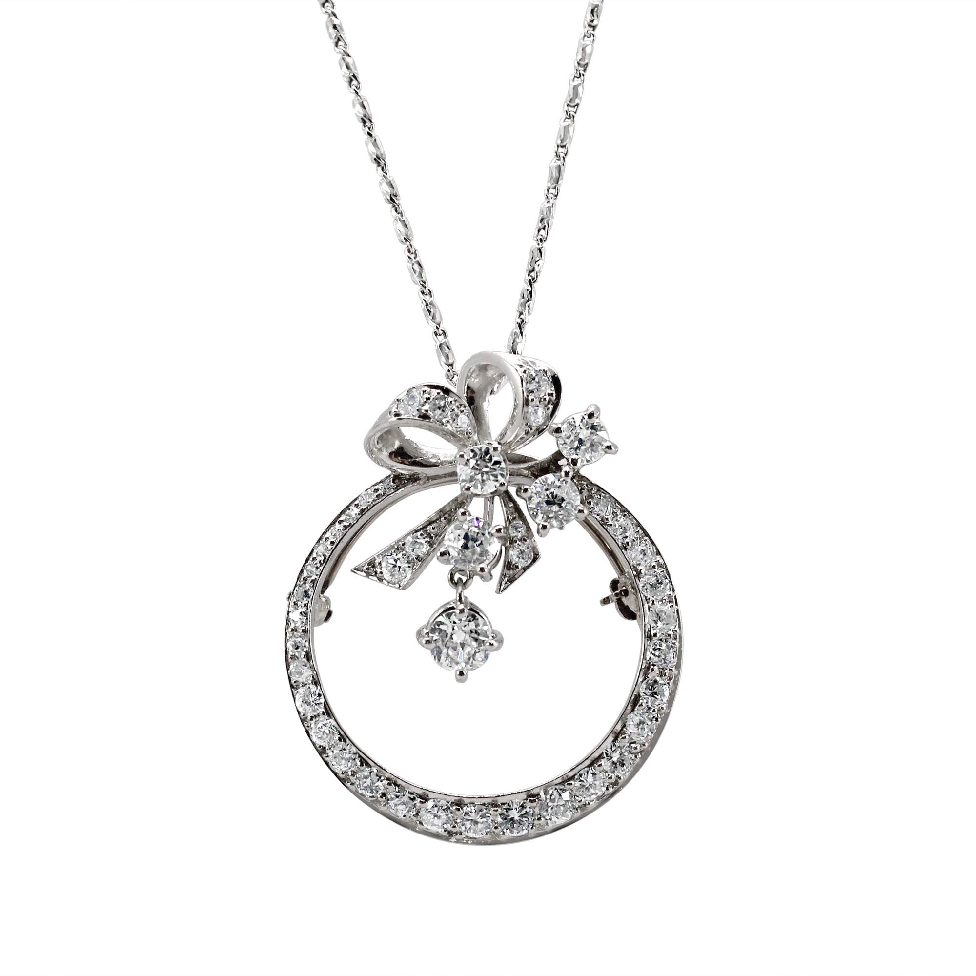 Beautiful estate necklace featuring 1.45 carats of diamonds and set in platinum that can also be worn as a pin