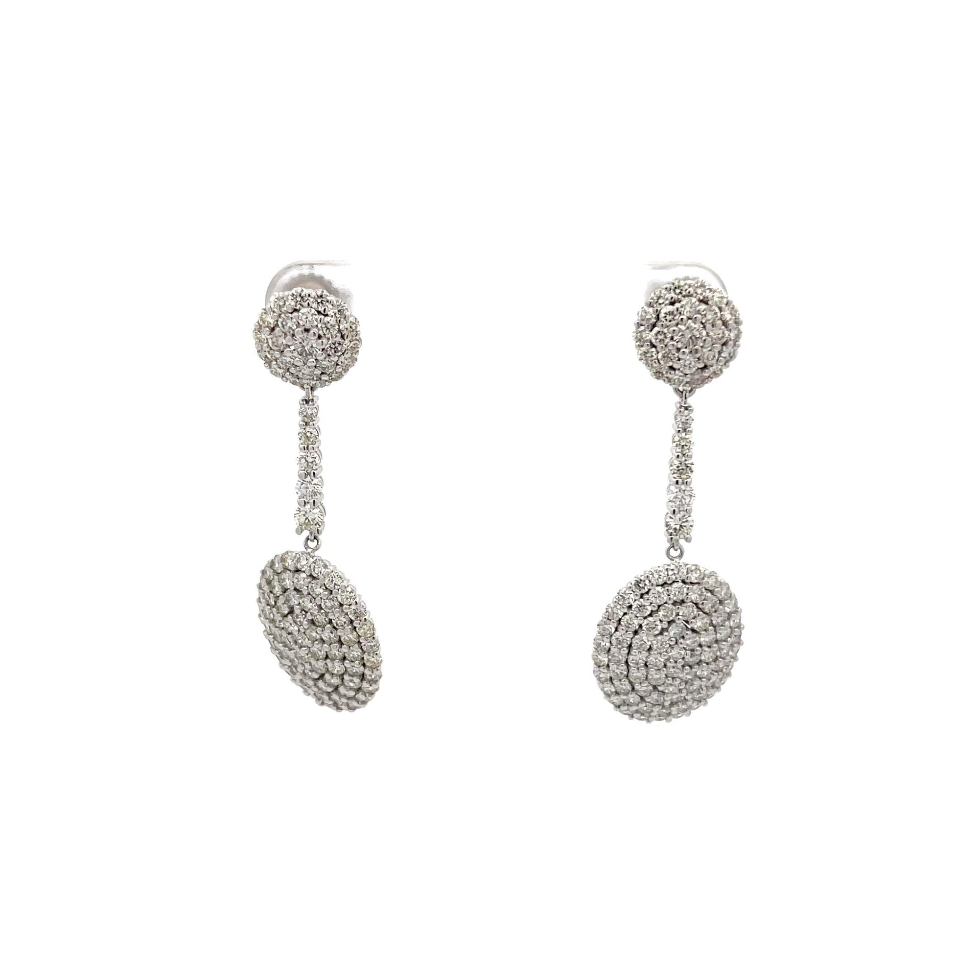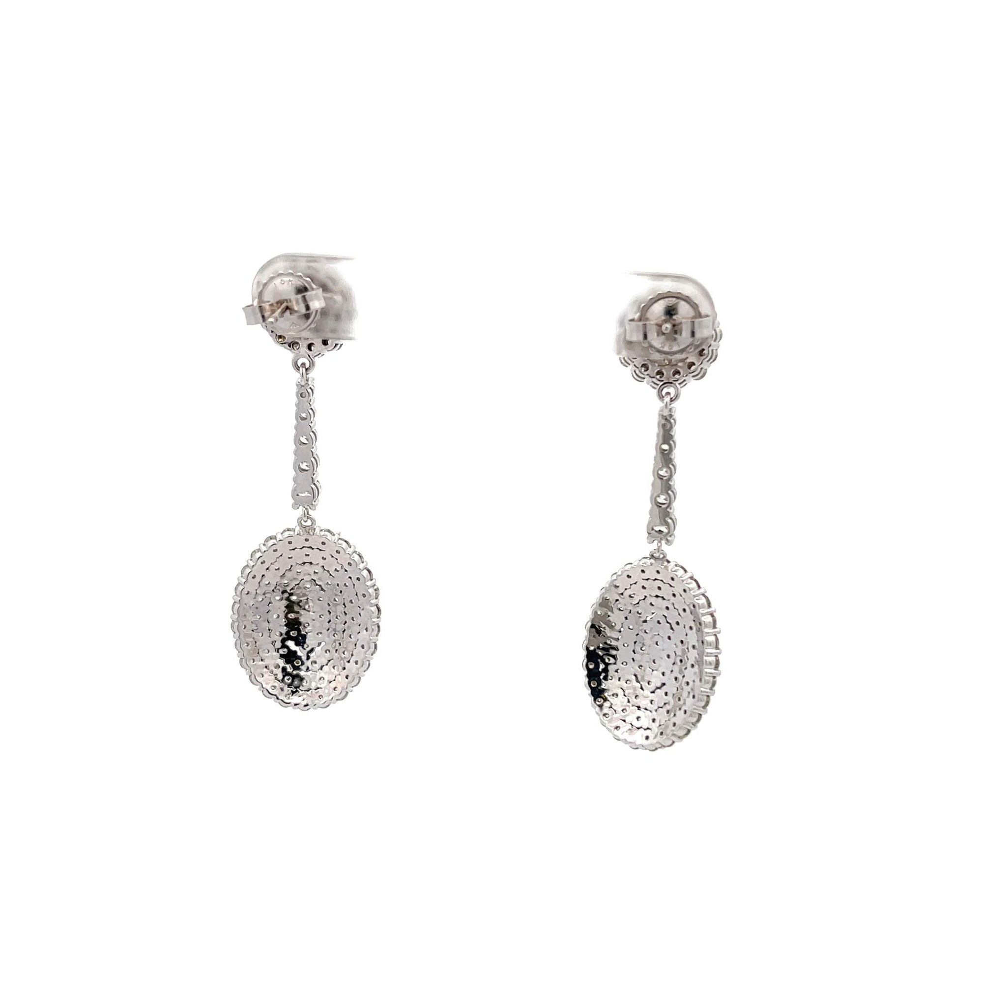 14 karat white gold oval dome earrings containing 5.62 carat total of diamonds.