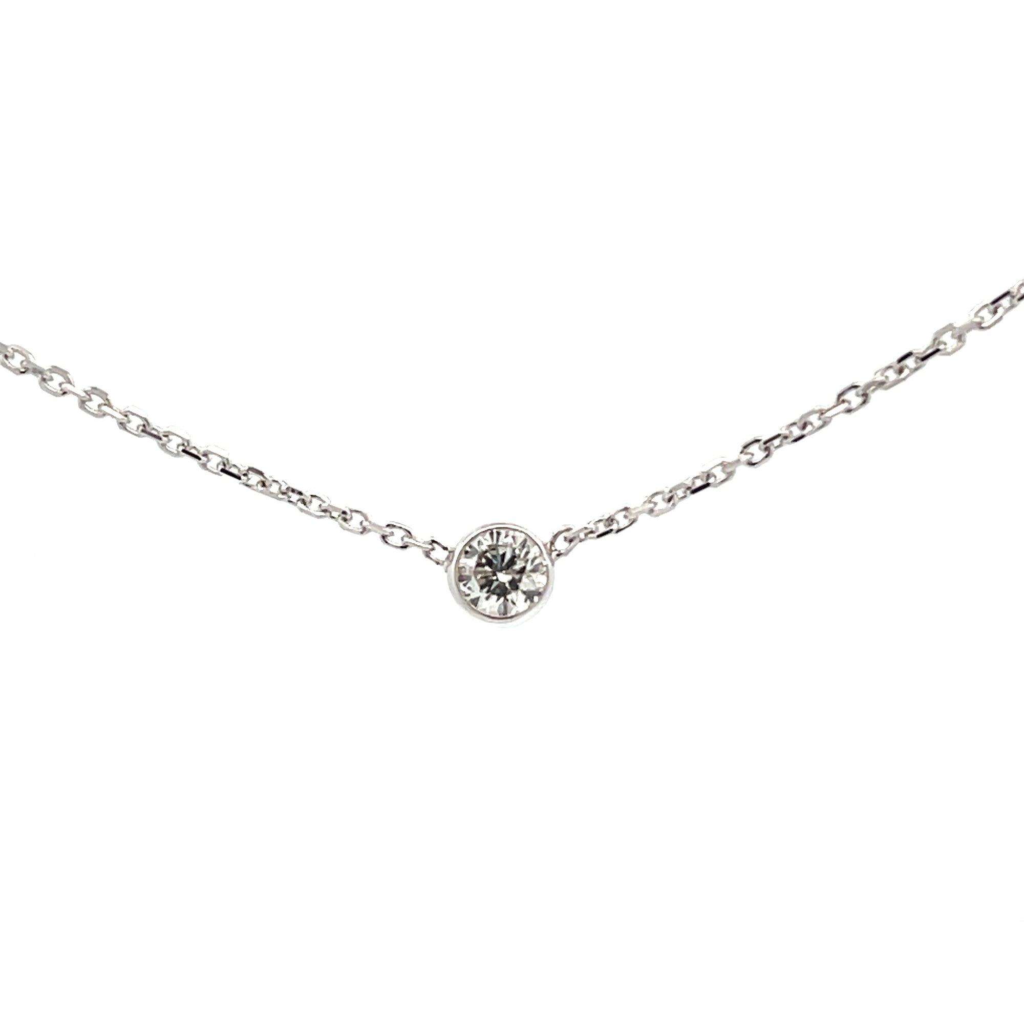 14 karat white gold pendant necklace containing 0.54 carats of bezel set diamond with I in color and SI2 in clarity.