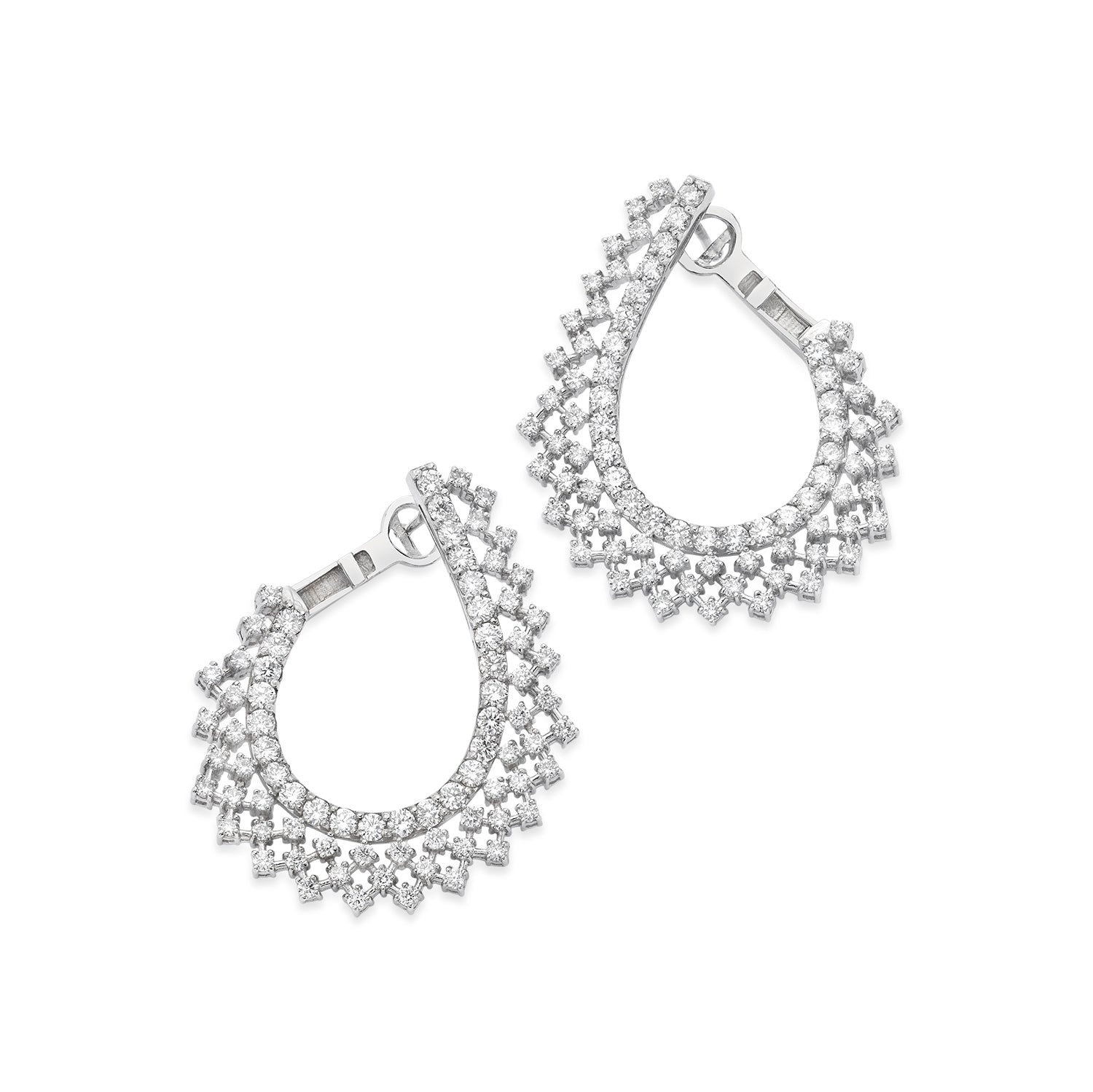 14 karat white gold round earrings containing 3.29 carat total of round diamonds with F in color and Si in clarity.