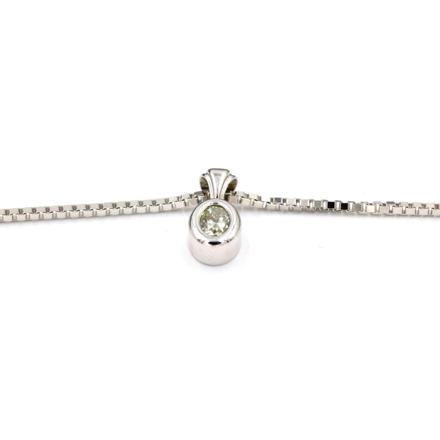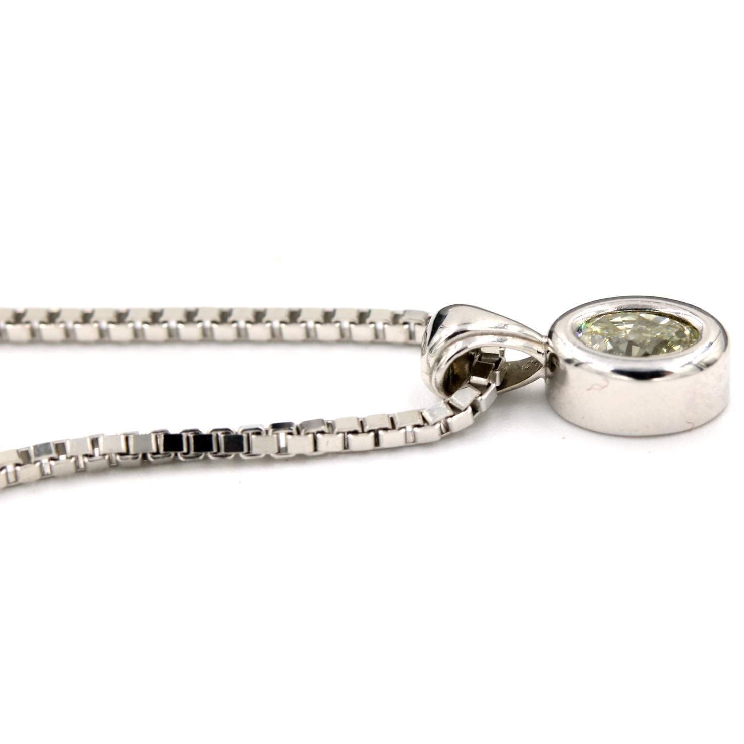14 karat white gold solitaire necklace containing 0.63 carats of diamonds.