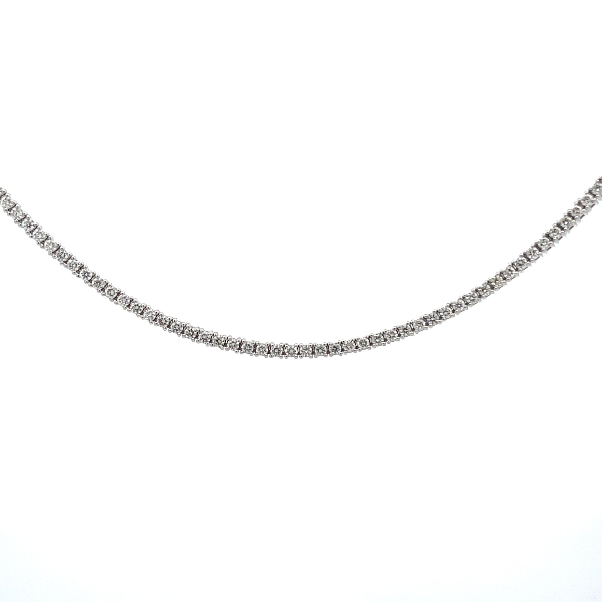 18 karat white gold tennis necklace containing 4.37 carat total of diamonds.
