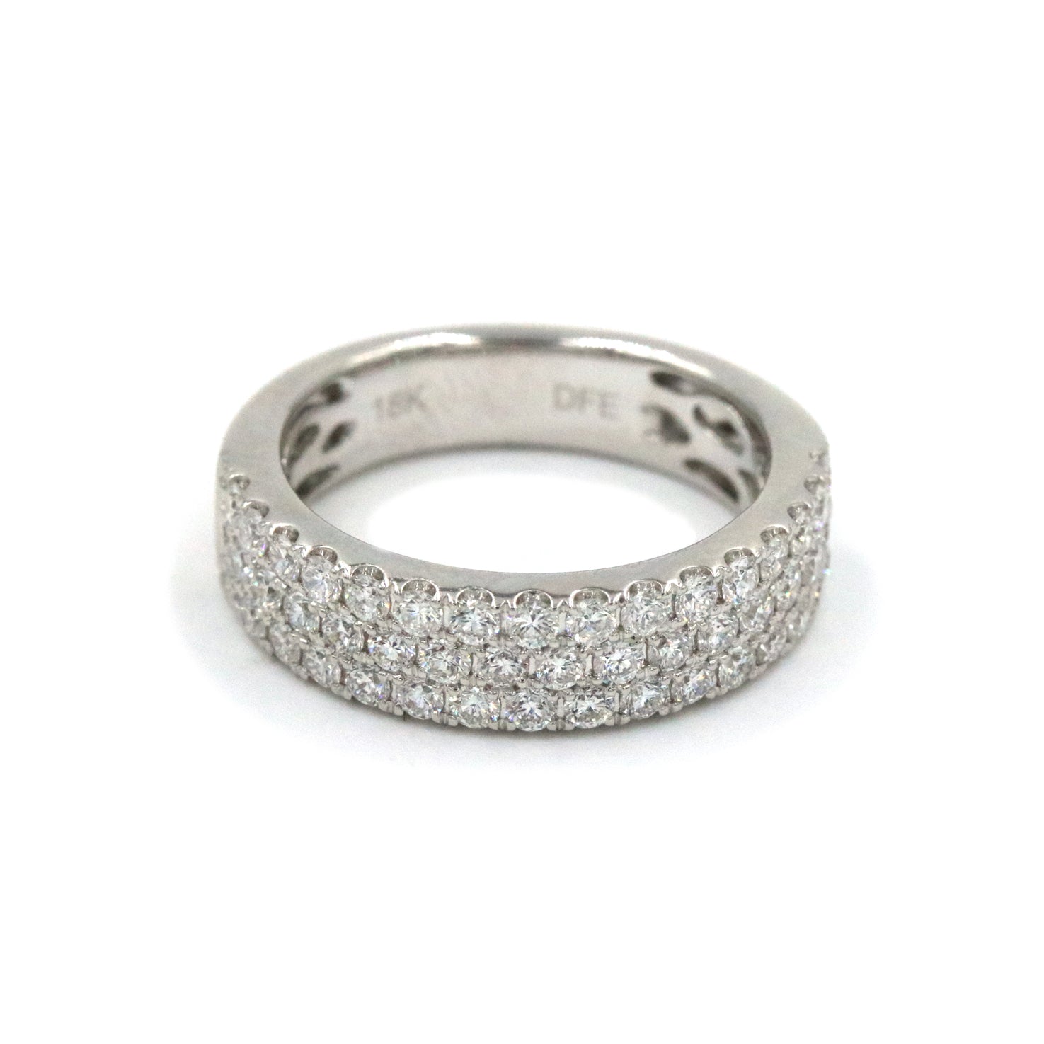 18 karat white gold wedding band containing 1.50 carat total of diamonds.