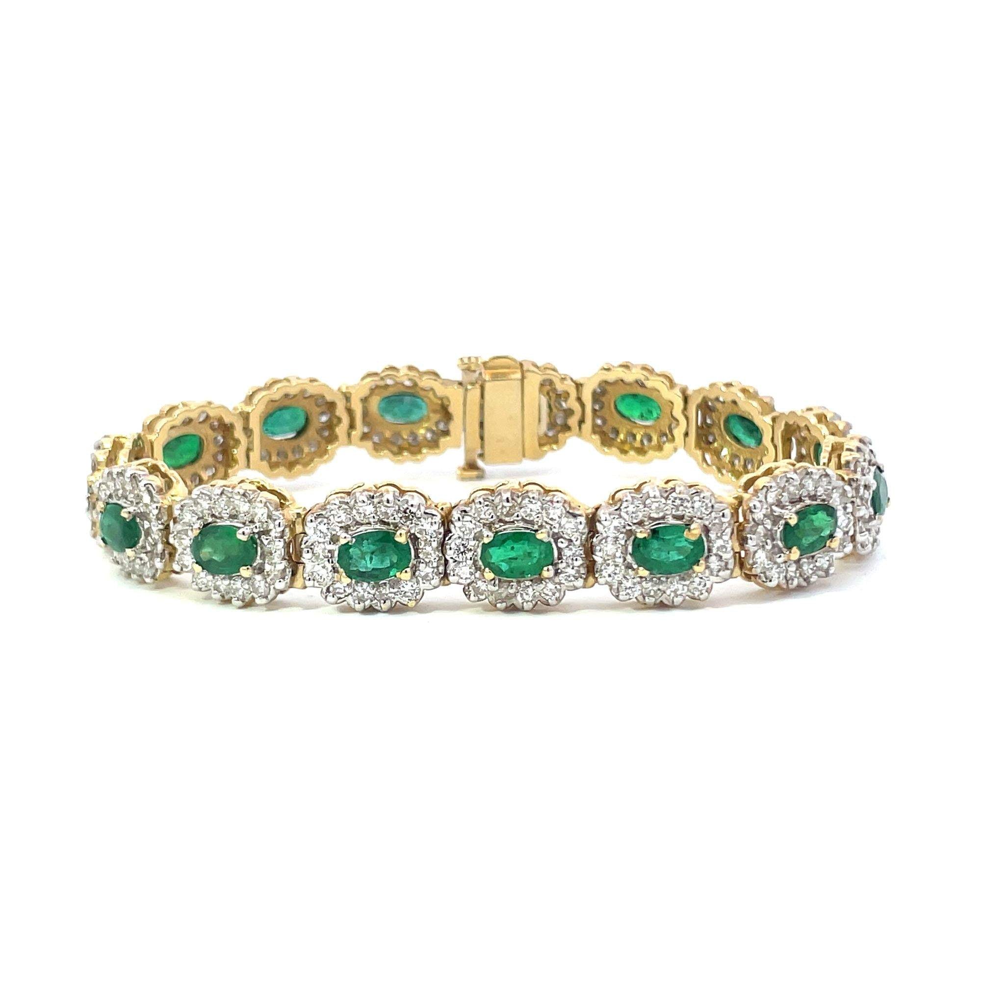 14kt Yellow Gold With Approximately 5 Carats Of Oval Emeralds And Approximately 5 Carats Of White Round Brilliant Cut Diamonds. The Bracelet Is 7 Inches In Length And Also Features An Invisible Safety Clasp.