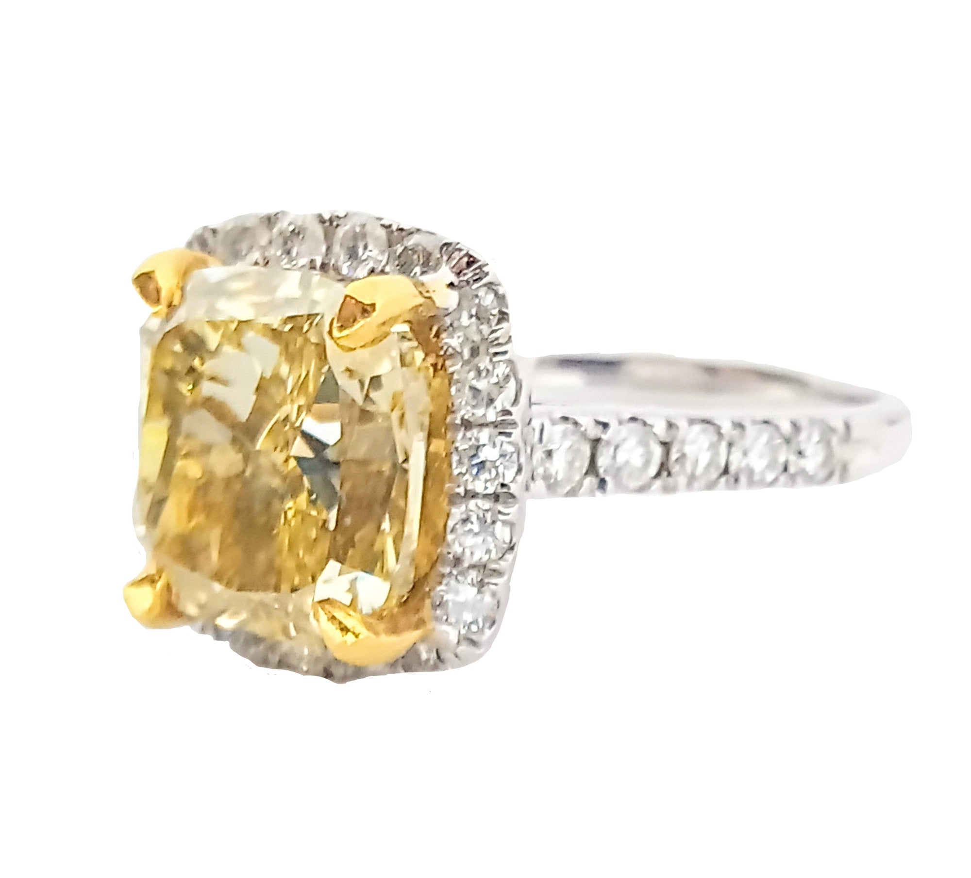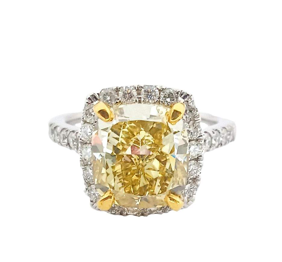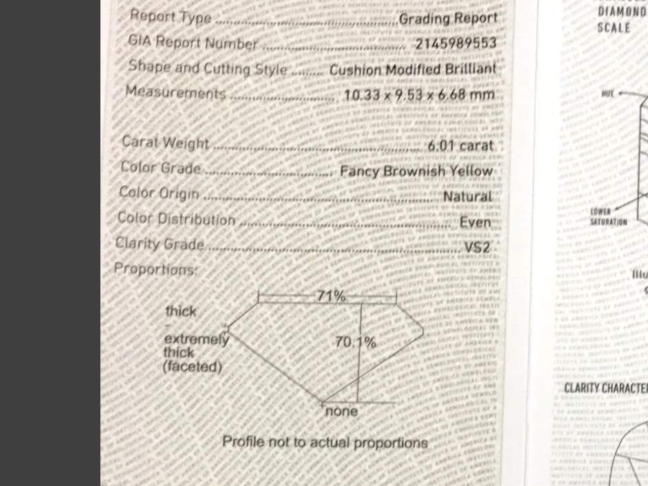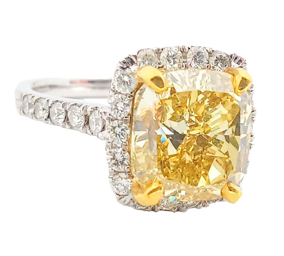 Beautiful  18K White Gold GIA  Cushion Cut Natural Fancy Brownish Yellow 6.01Ct Diamond Halo Engagement Ring