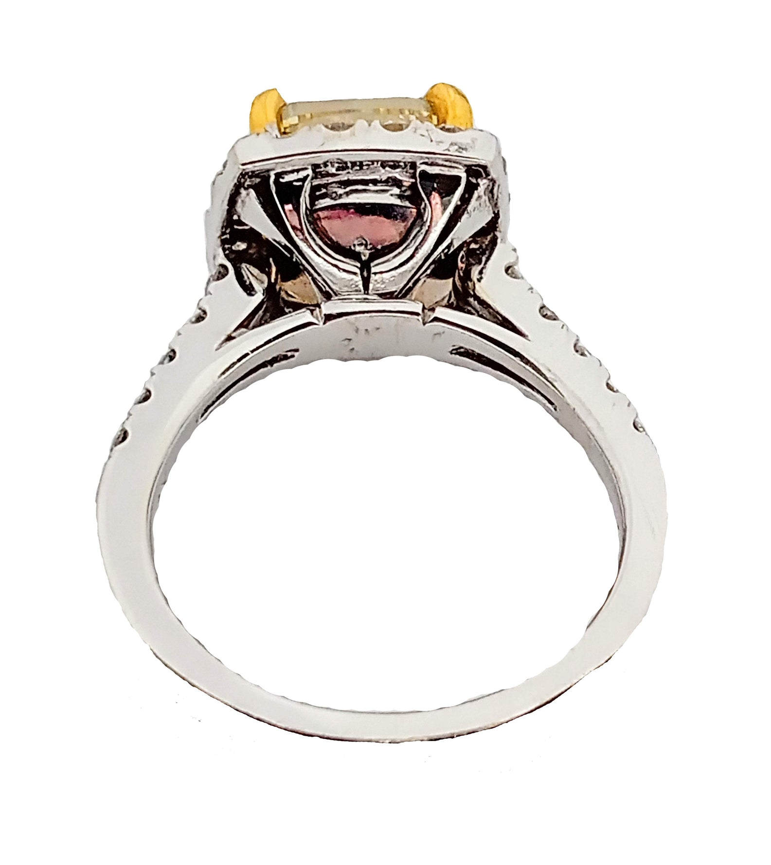 18K White Gold Cushion Cut Natural Fancy Brownish Yellow Diamond Halo Engagement Ring 1D=6.01Ct FBrY/VS2 28D=~.60Ctw (GIA Grading Report #214598XXXX)