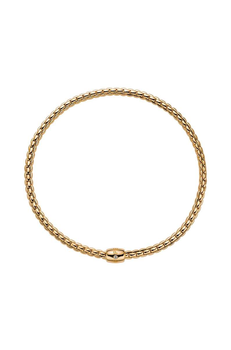 18K Yellow Gold Fope EKA, 46CM, Necklace Containing 0.05 Carats Of A Center Diamond.