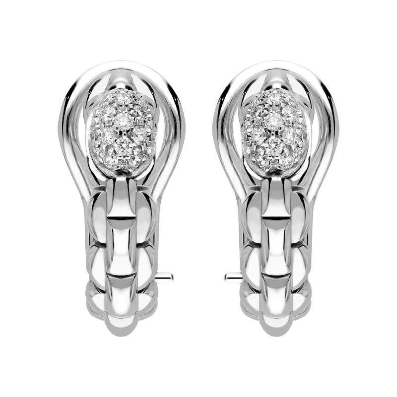 18 karat white gold Fope EKA earrings containing 0.19 carat total of diamonds.