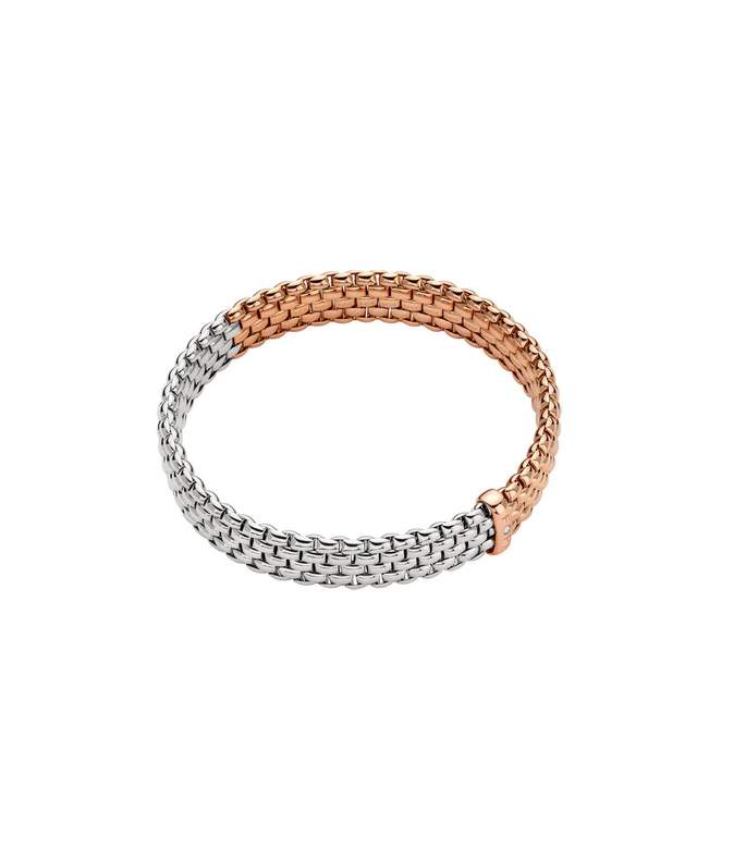 18K White Gold & Rose Gold Fope Vendome, Size Medium, Bracelet Containing 0.01 Carats Of A Center Diamond.