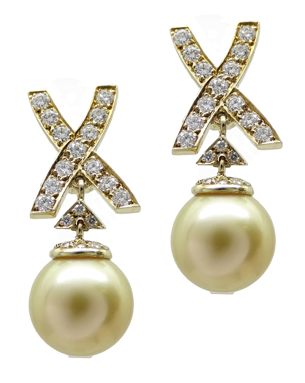 YELLOW GOLD EARRINGS WITH GOLDEN SOUTH SEAS PEARLS AND ROUND BRILLIANT DIAMONDS