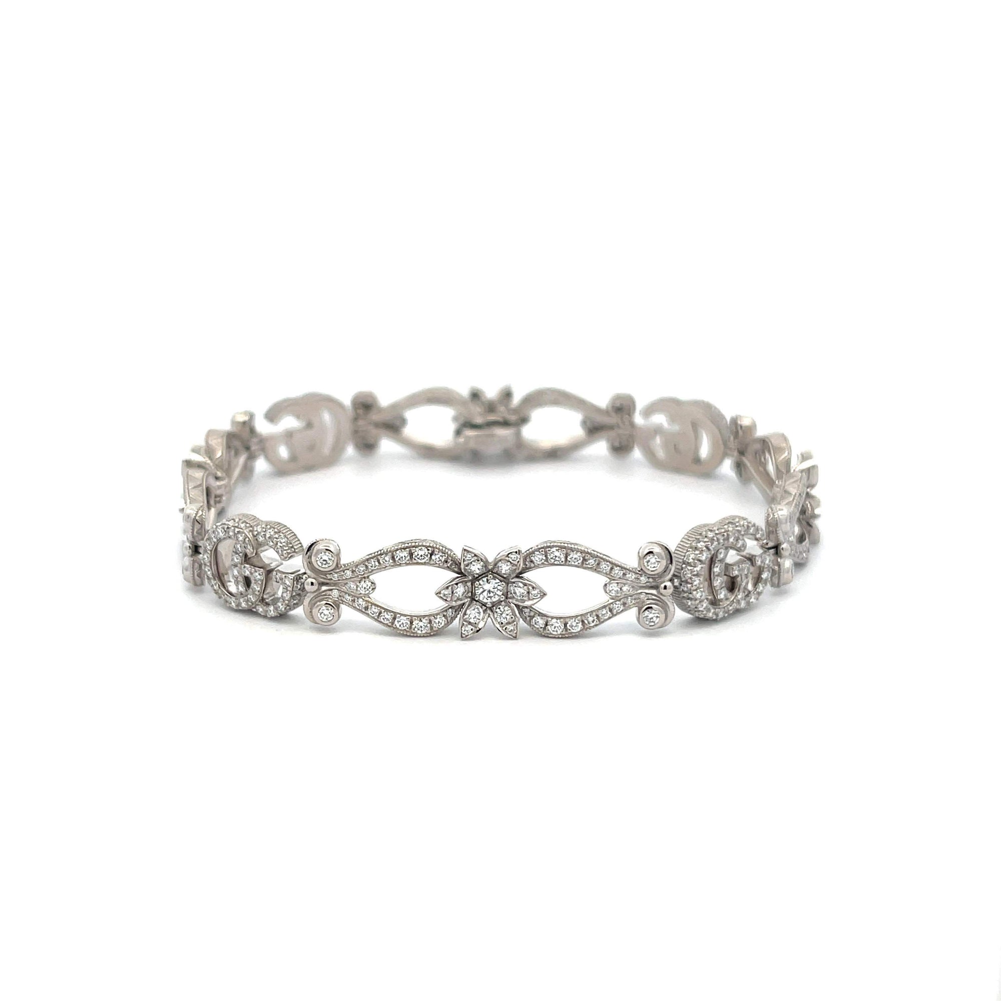 18 karat white gold Gucci Flora Bracelet containing 2.64 carat total of pave diamonds with G-H in color and VVS in clarity.