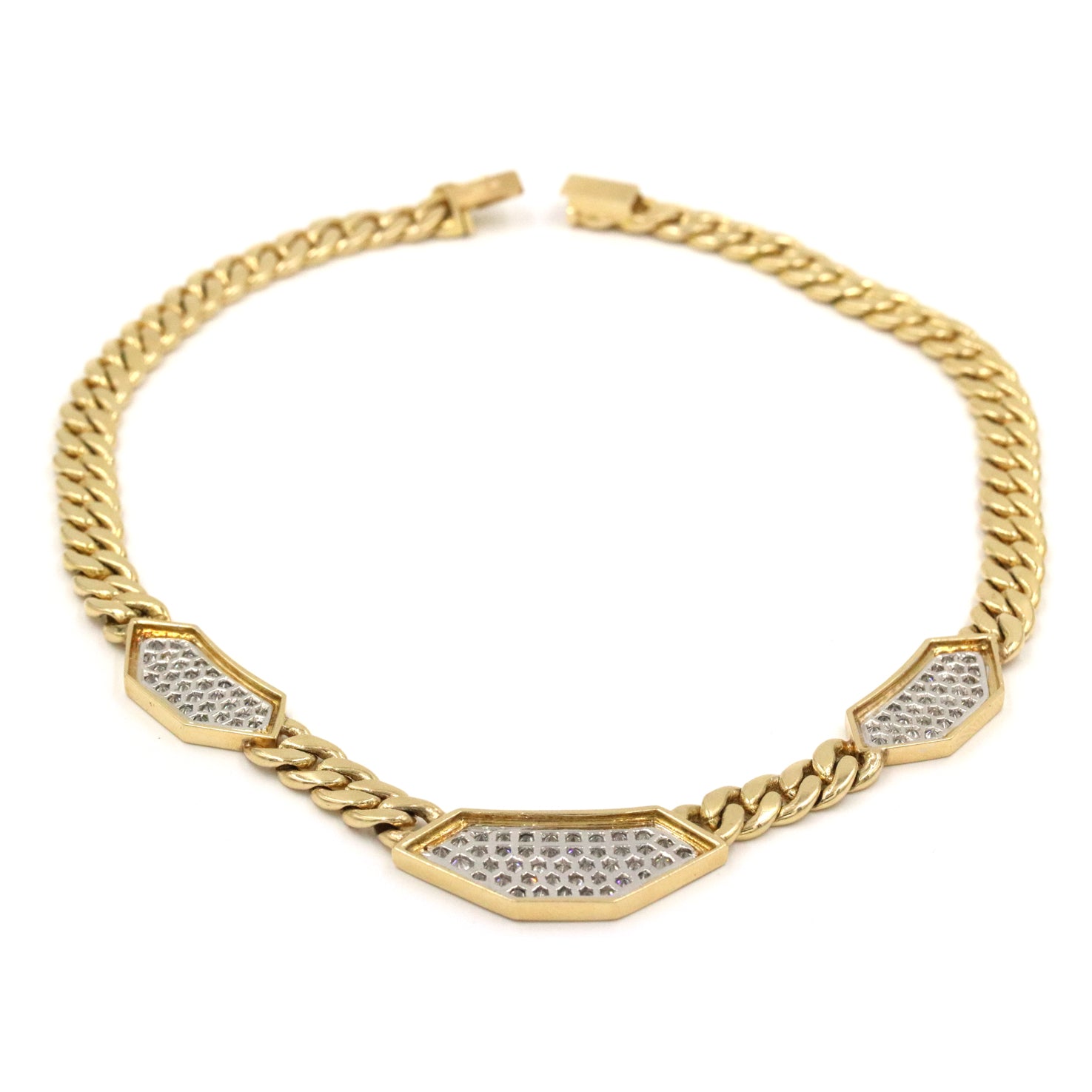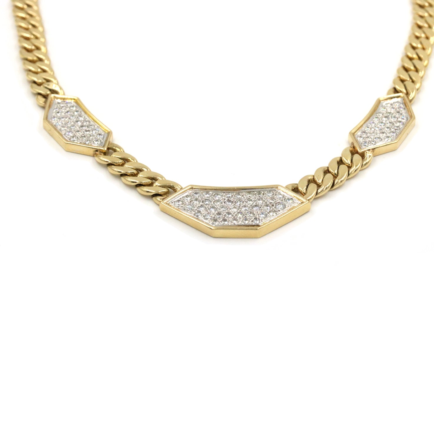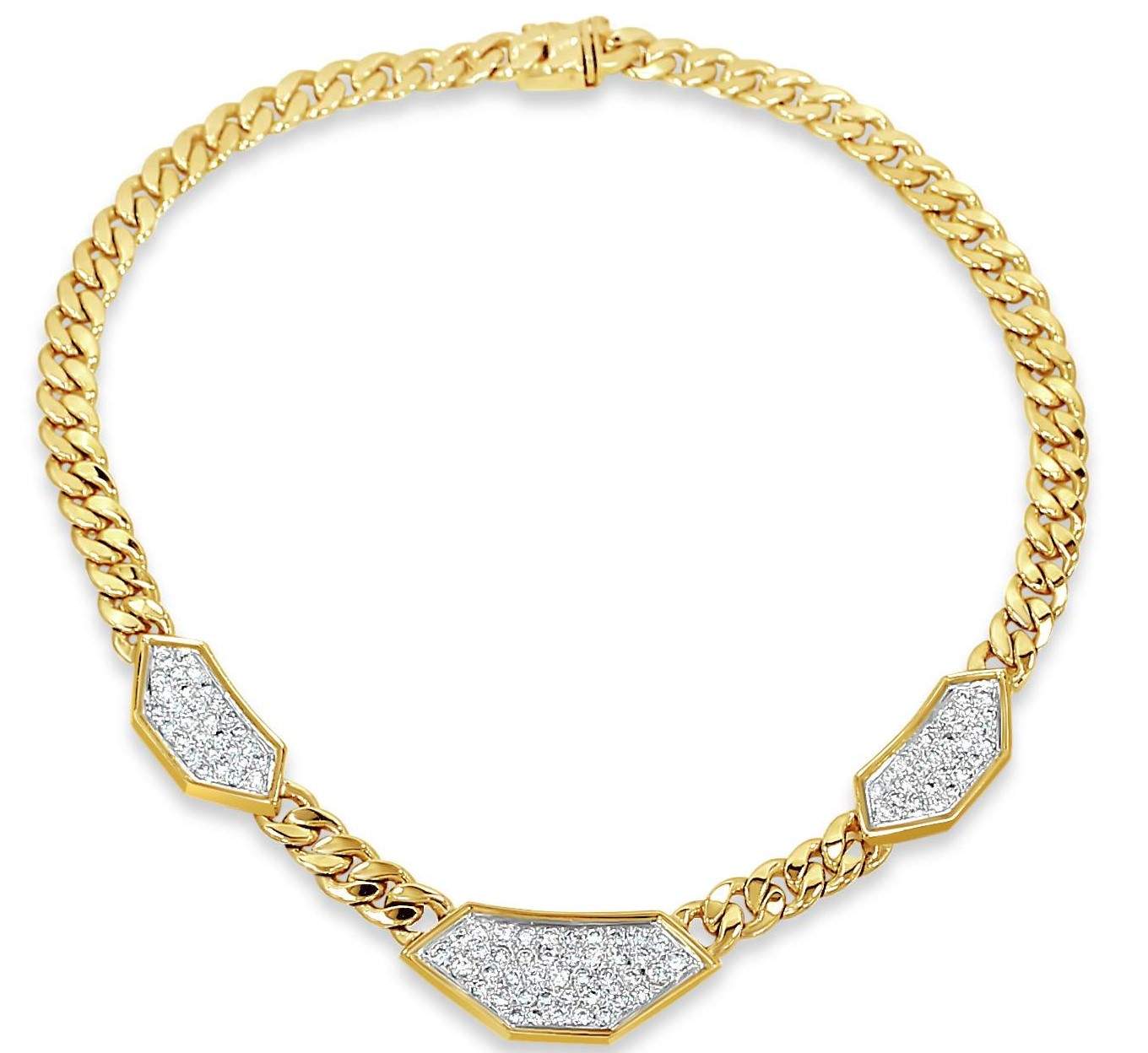 14 karat yellow gold Hammerman Brothers necklace containing 3.00 carats of round diamonds.