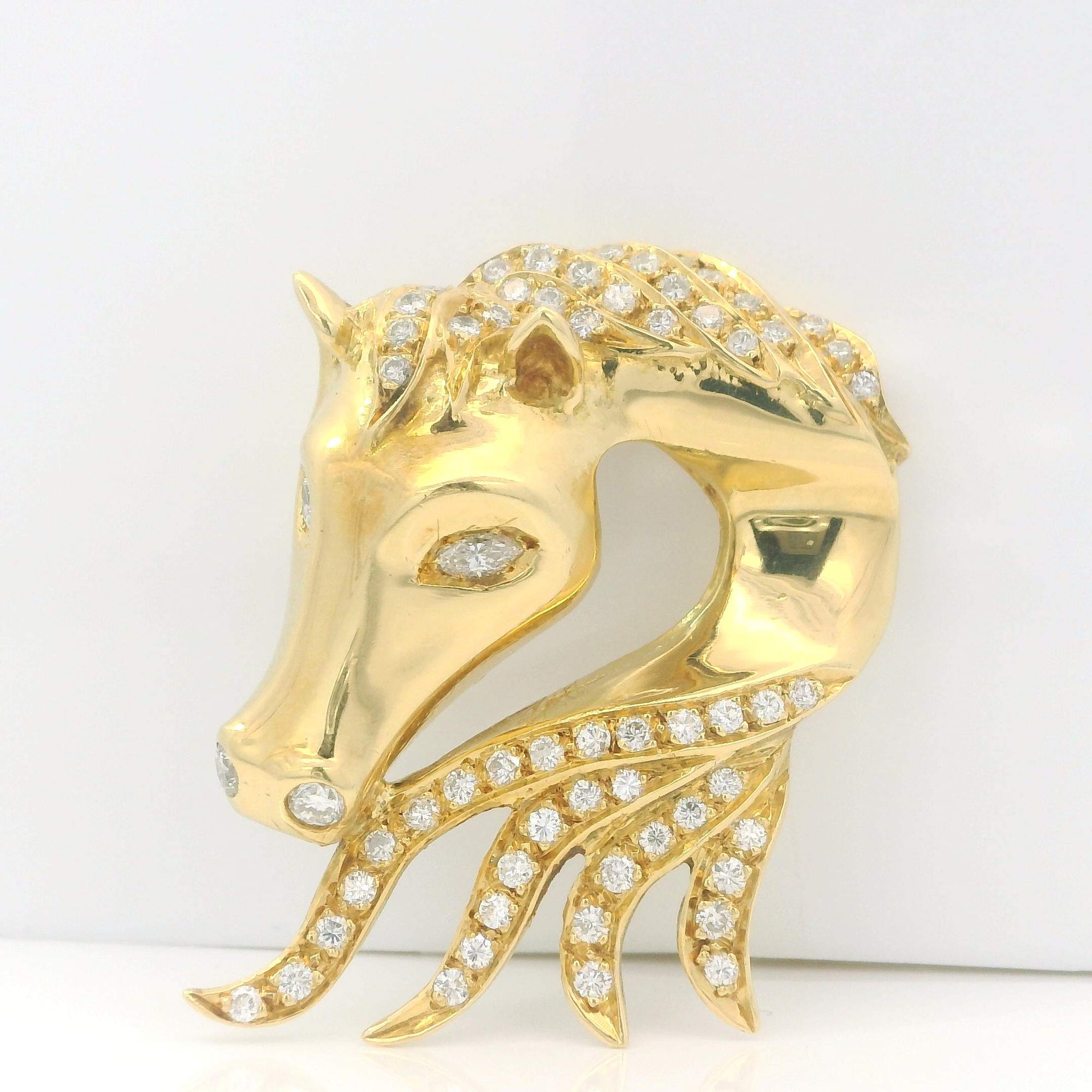 18kt yellow gold Horse Head Pendant, weighing 1.40cts in diamonds