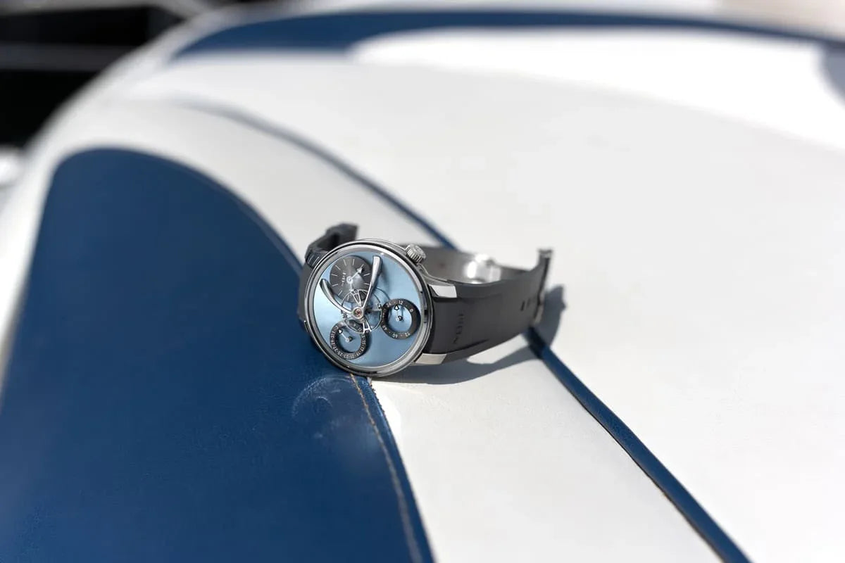 Next to the LM Perpetual EVO and LM Sequential EVO, the LM Split Escapement EVO was first introduced as a limited edition for the UAE’s 50th anniversary. There are three additional LM SE EVO editions: the first comes in an icy-cool blue base plate and slate grey sub dials. The second edition is reserved exclusively for the MB&F LAB in Beverly Hills and features a striking black base plate and metallic blue sub dials. And finally, a third edition joins the family in 2023; a sophisticated black and green edition for Taipei.