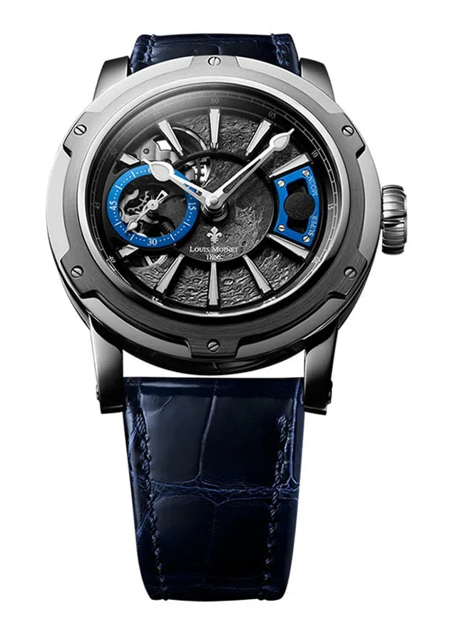 Case: 316 L stainless steel Dial: Hammering, Nickel-plating, Brushing Calibre: LM45 Jewels: 36 Power reserve: 48 hours Water resistance: 50 m Strap material: Louisiana alligator leather, Alligator lining, hand-sewn