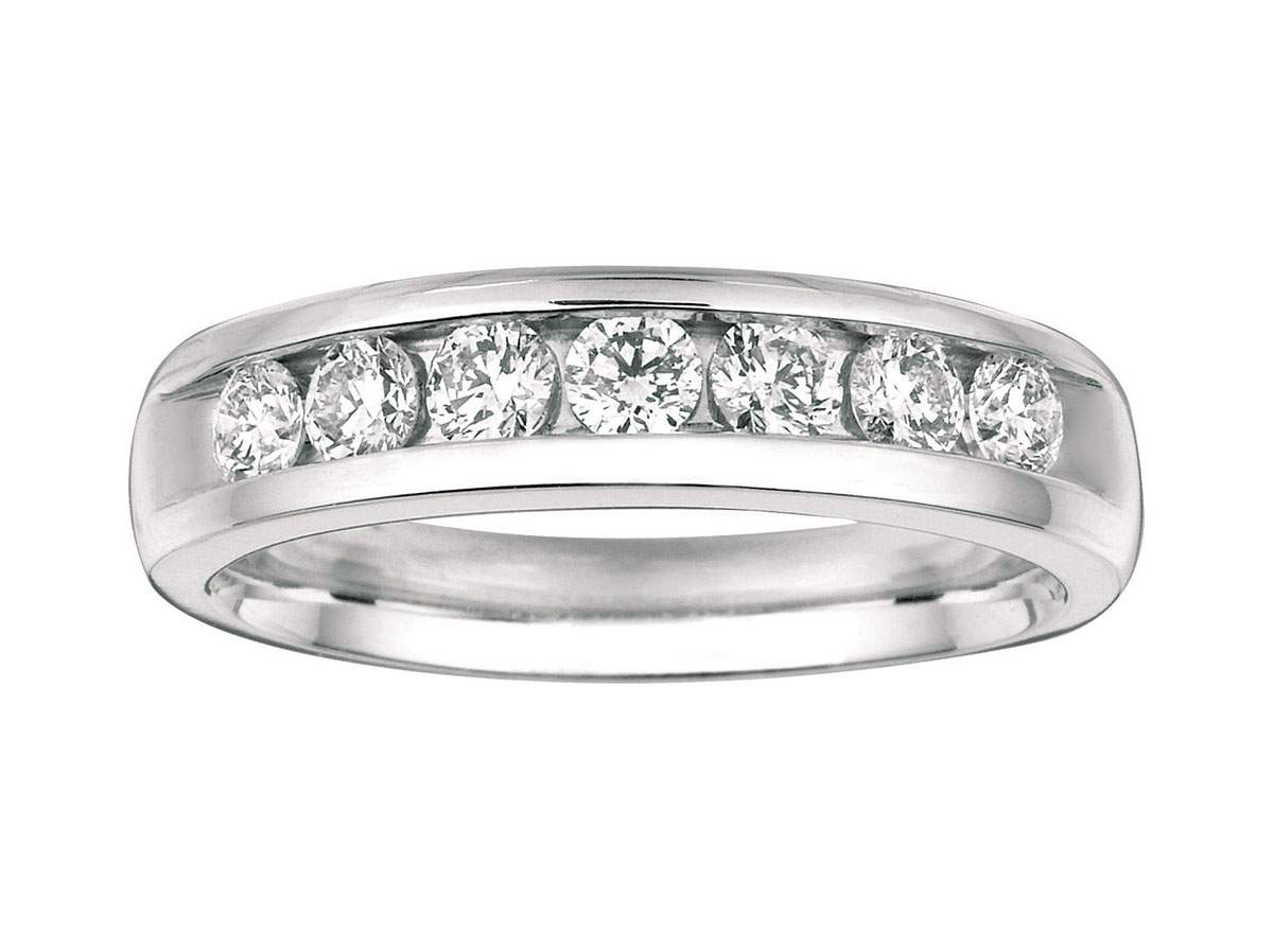 14K White Gold Mens Round Diamond Channel Set Band, 7 Diamond= ~1.00 Ctw(H/SI)