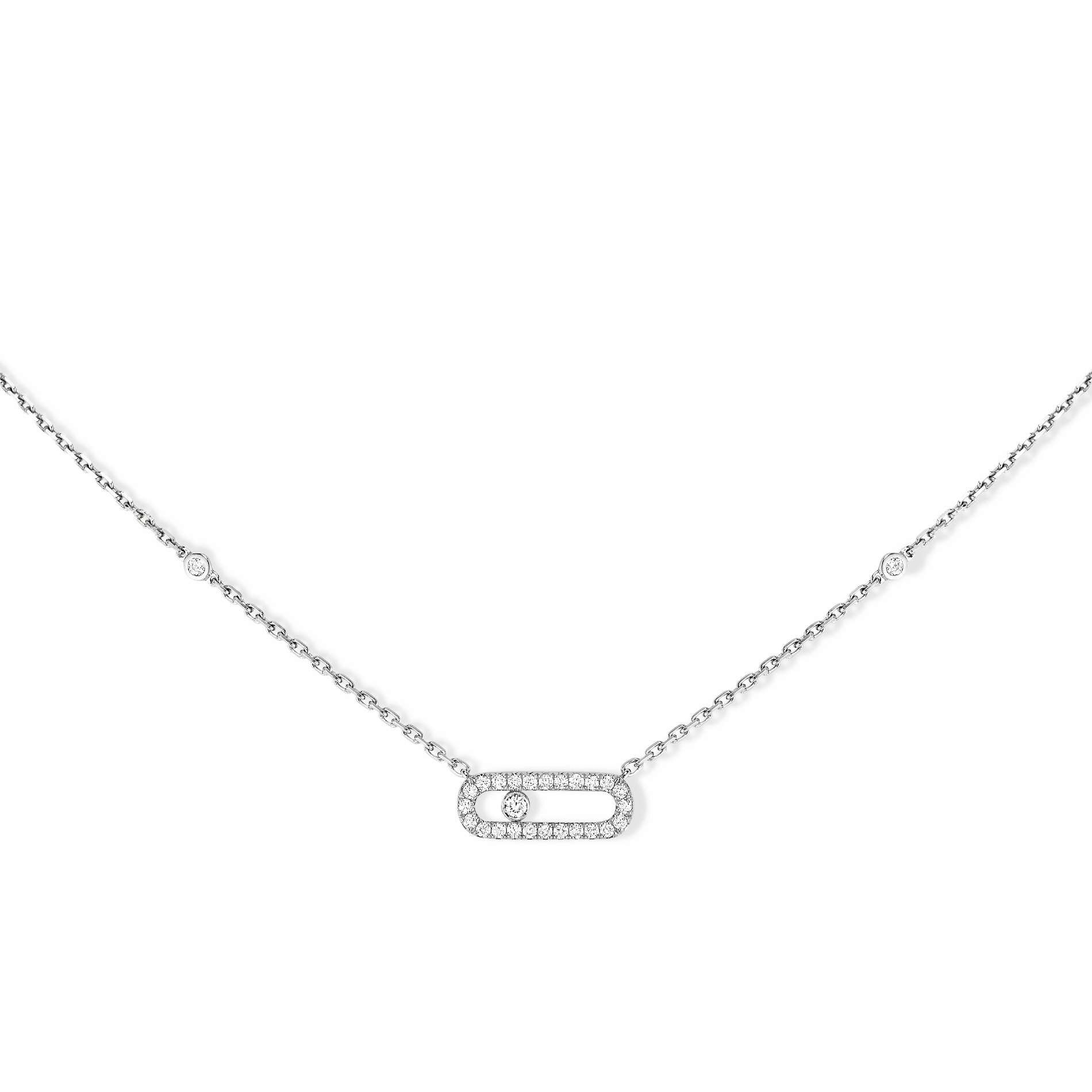 18 karat white gold Messika Move Uno Pave Necklace containing 0.214 carat total of diamonds.