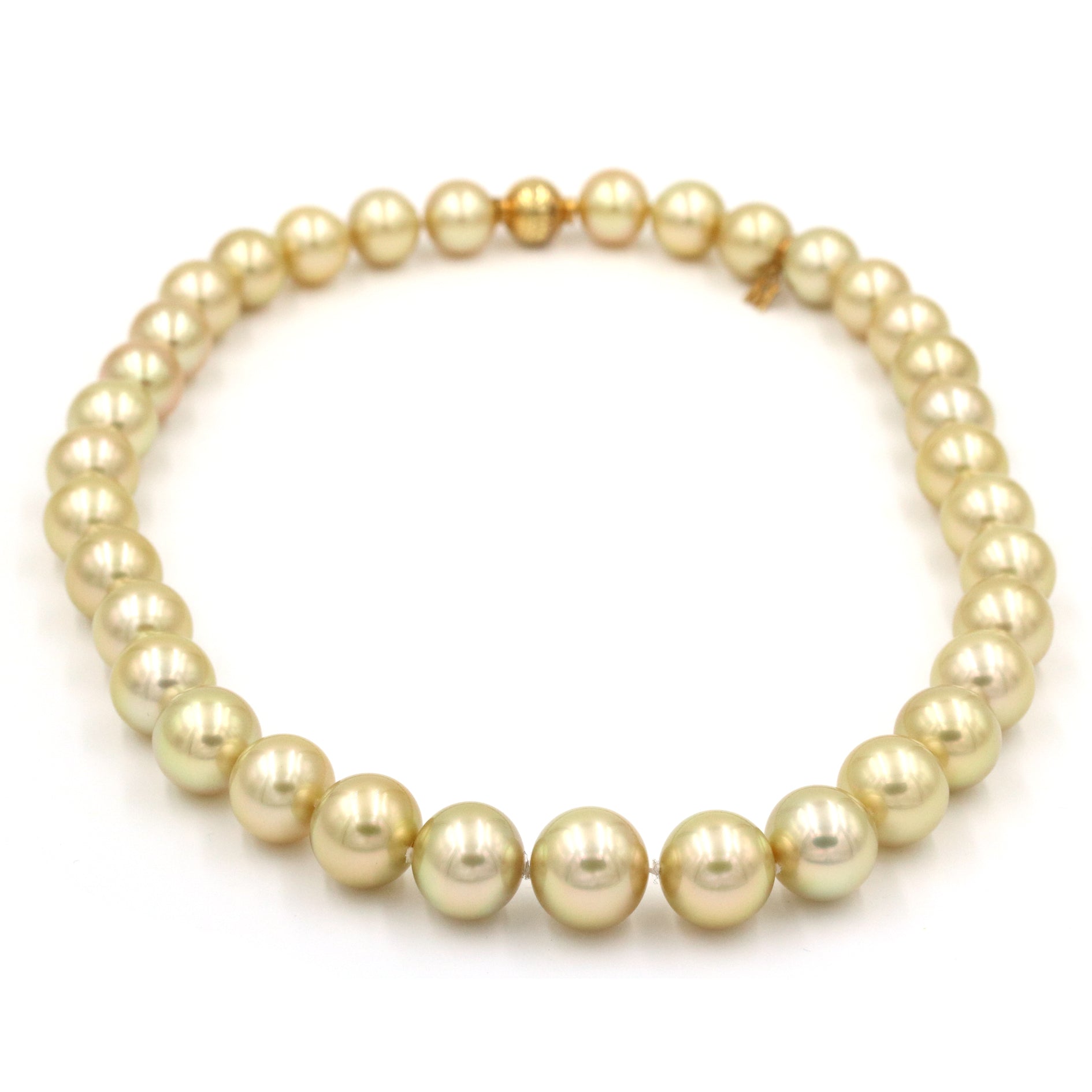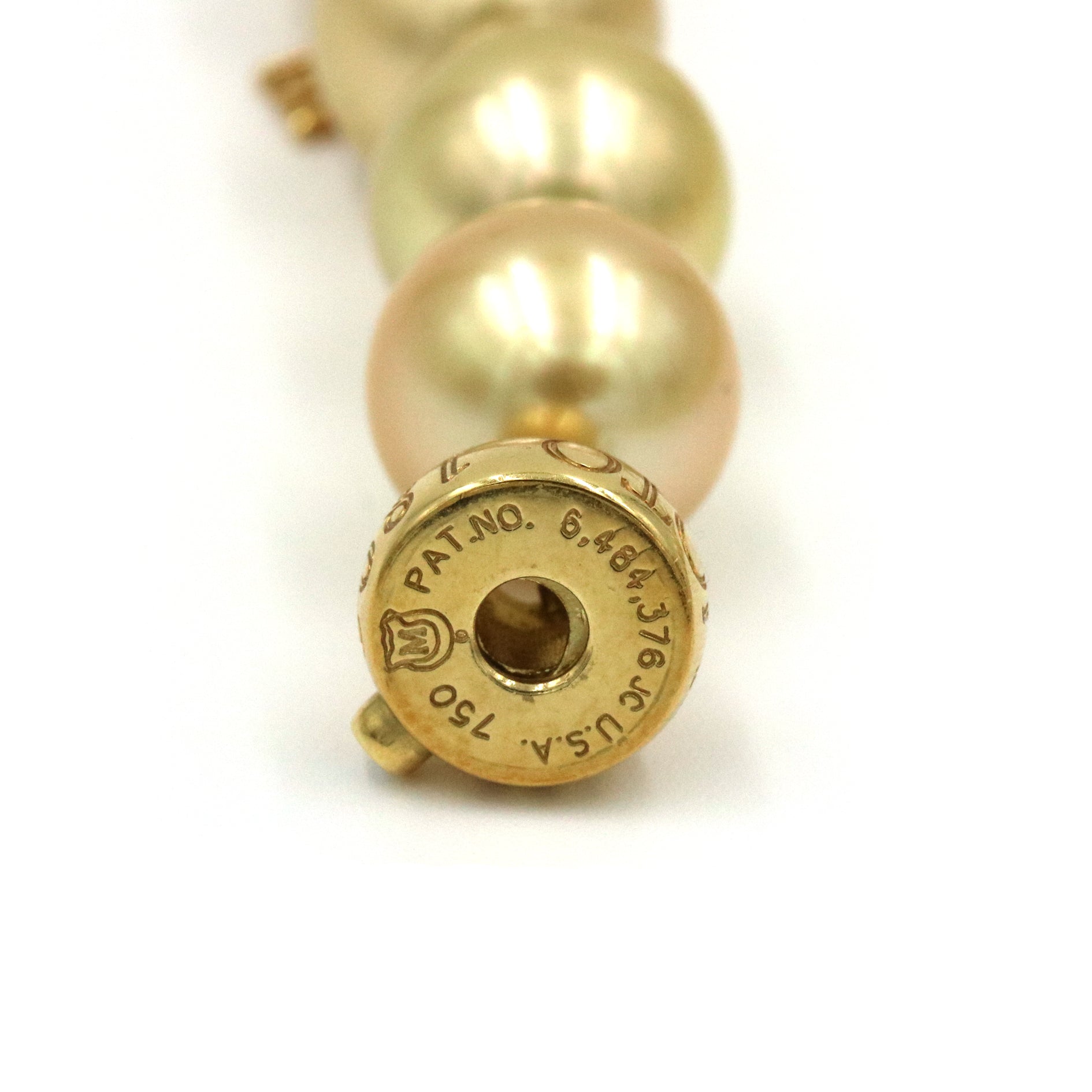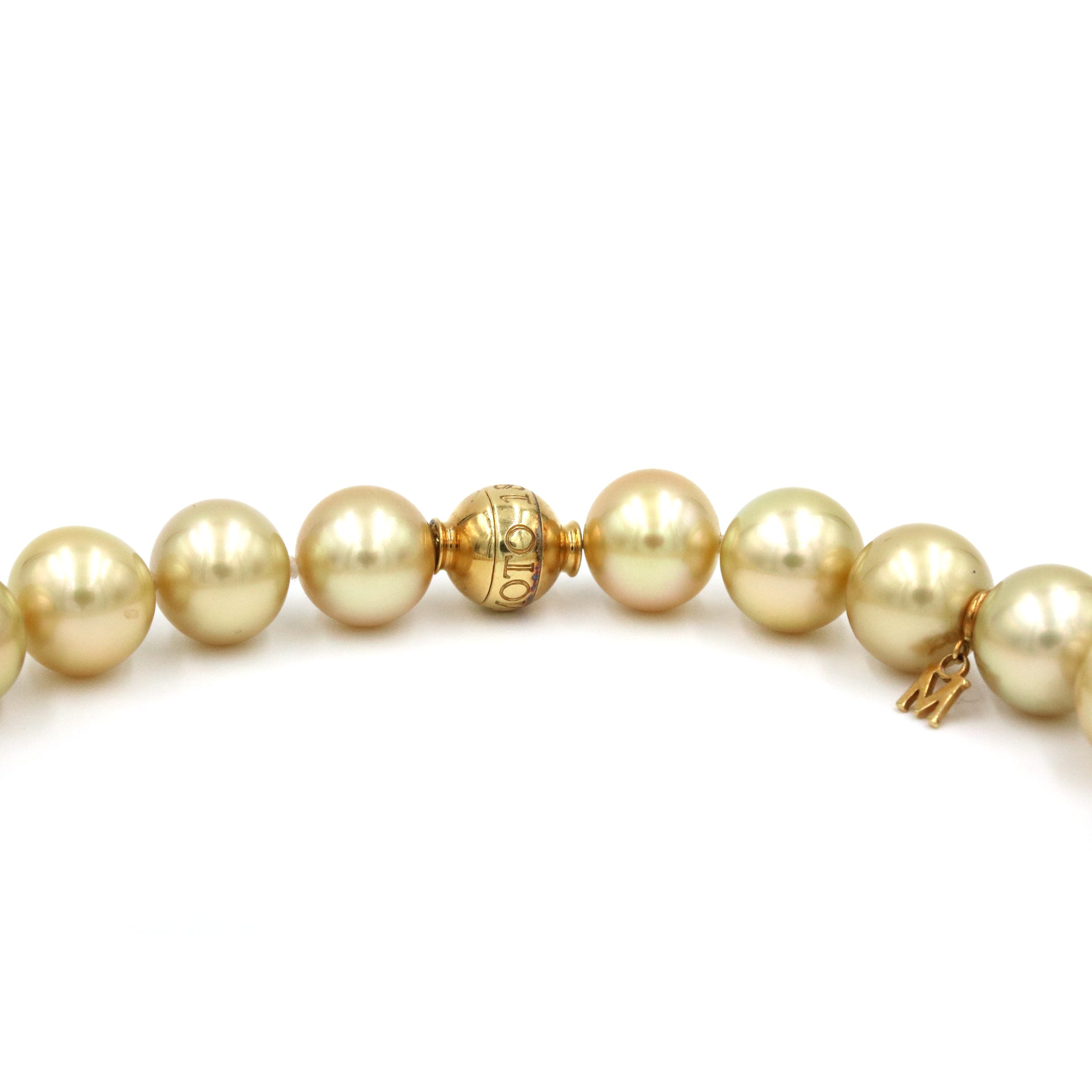 18 karat yellow gold Mikimoto necklace containing golden south sea cultured pearls.