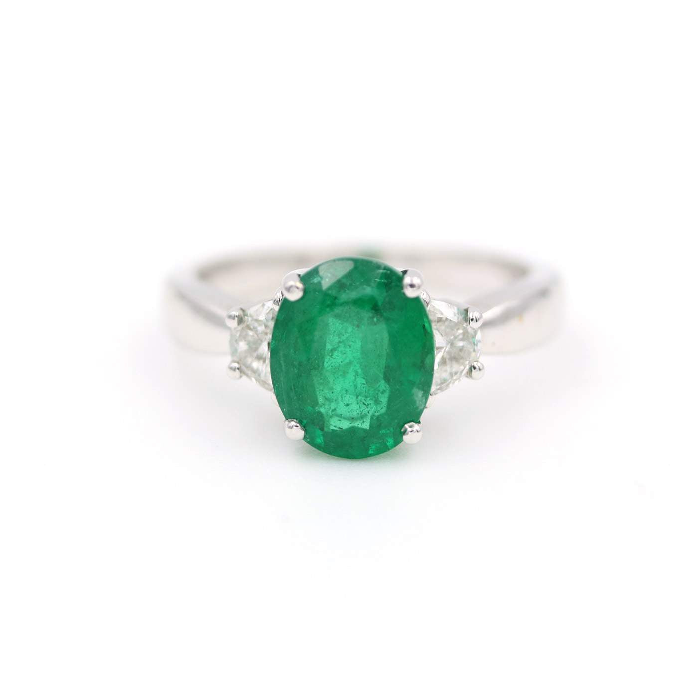 18K White Gold Oval Emerald And Diamond Ring E=2.59Ctw D=.45Ctw