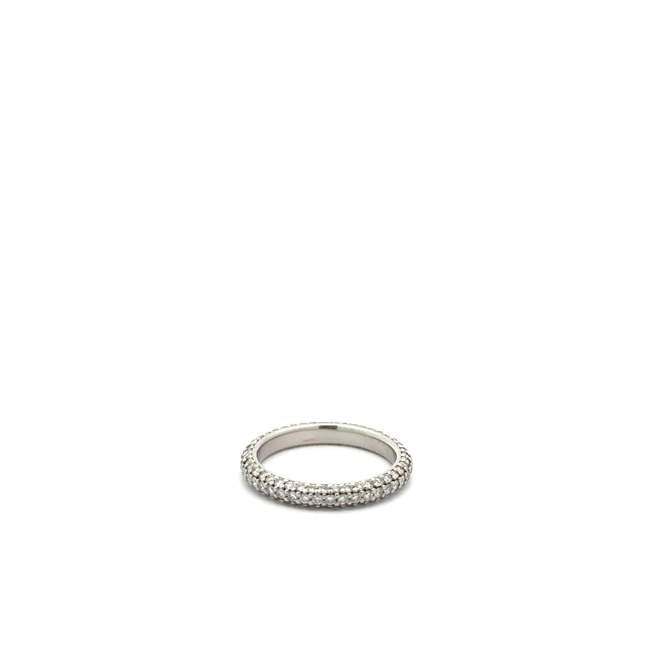 Crafted in platinum, this band features approximately 1.50 carats of pave diamonds. Ring is a size 6.