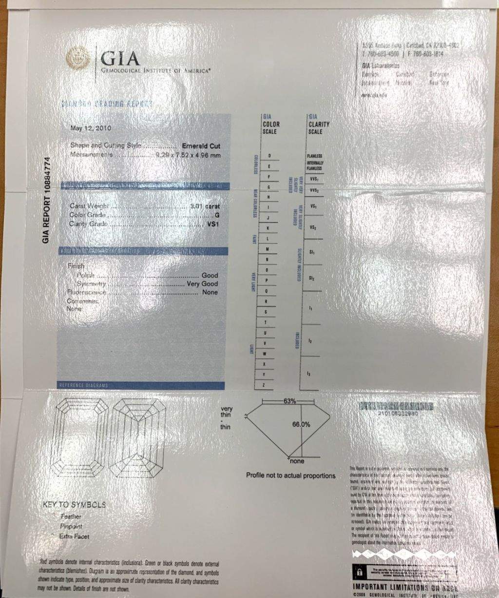 Platinum Emerald Cut Diamond Ring With Round Diamonds Prong Set On Profile 42D=.20ctw 1EC=3.01Ct G/VS1 (GIA#10884774)