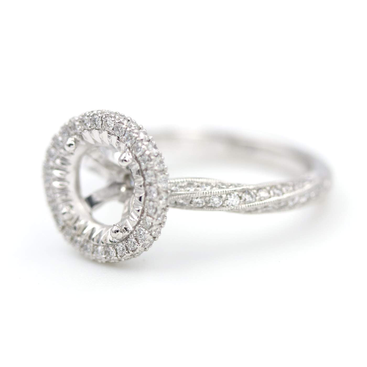 Platinum Twist Shank And Halo Diamond Semi-Mount D=.84Ctw