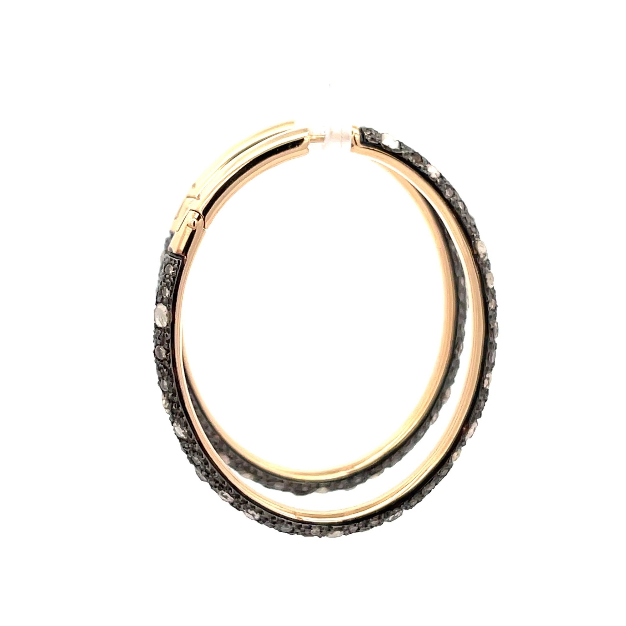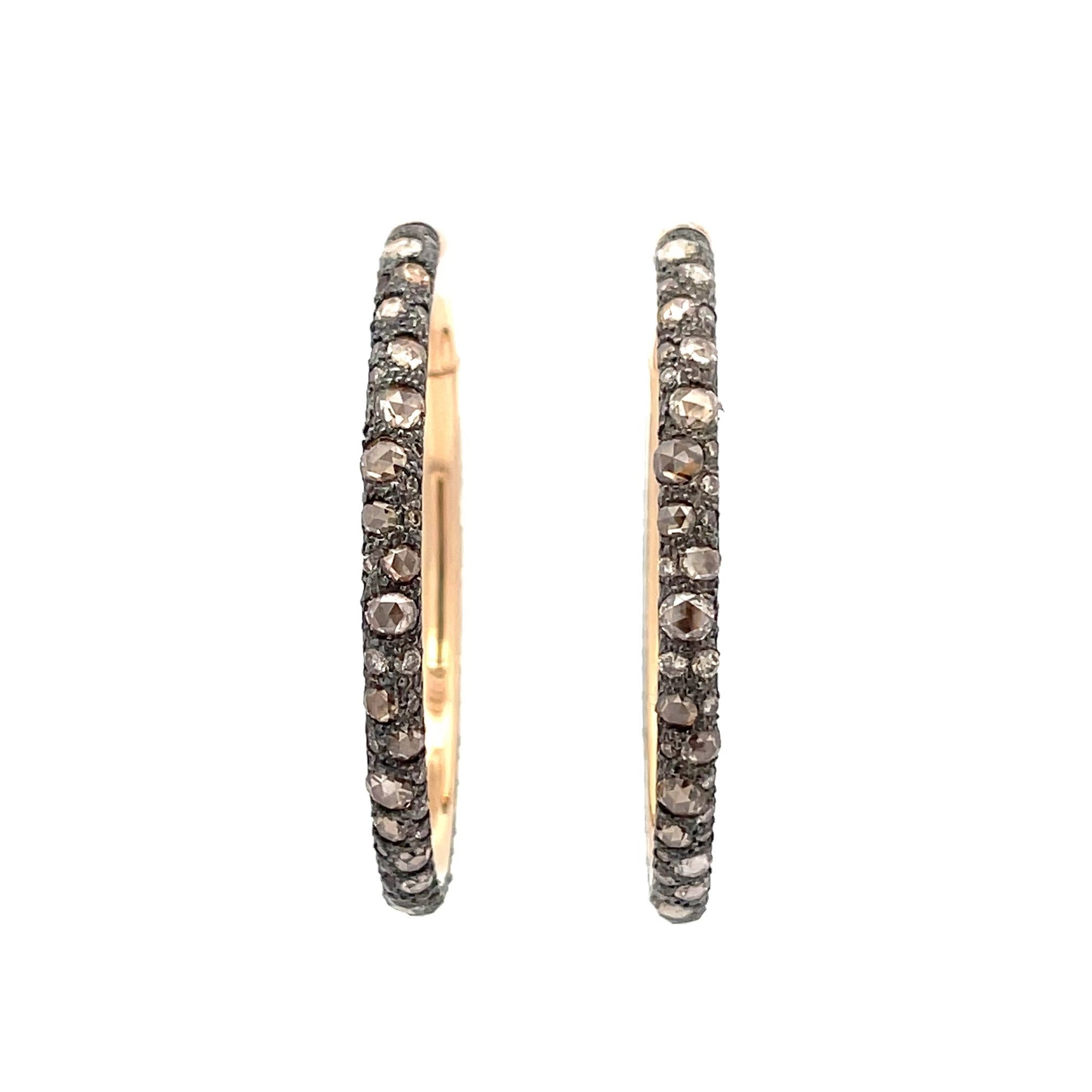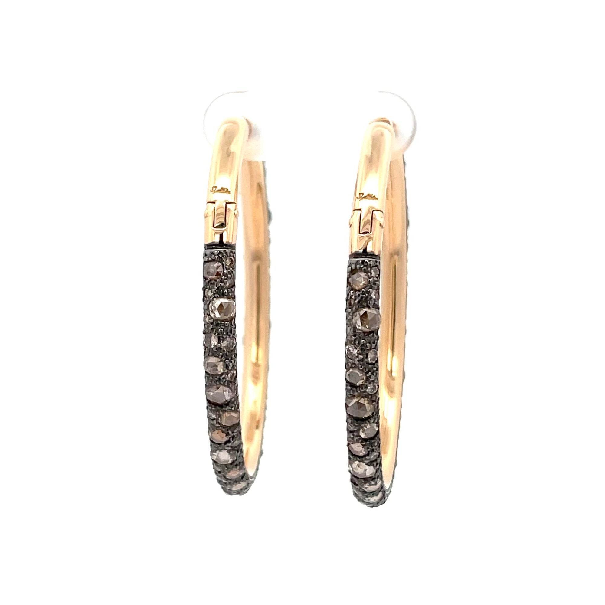 18 karat rose gold and silver catene Pomellato Hoop earrings with 5.30 brilliant and rose cut diamonds.