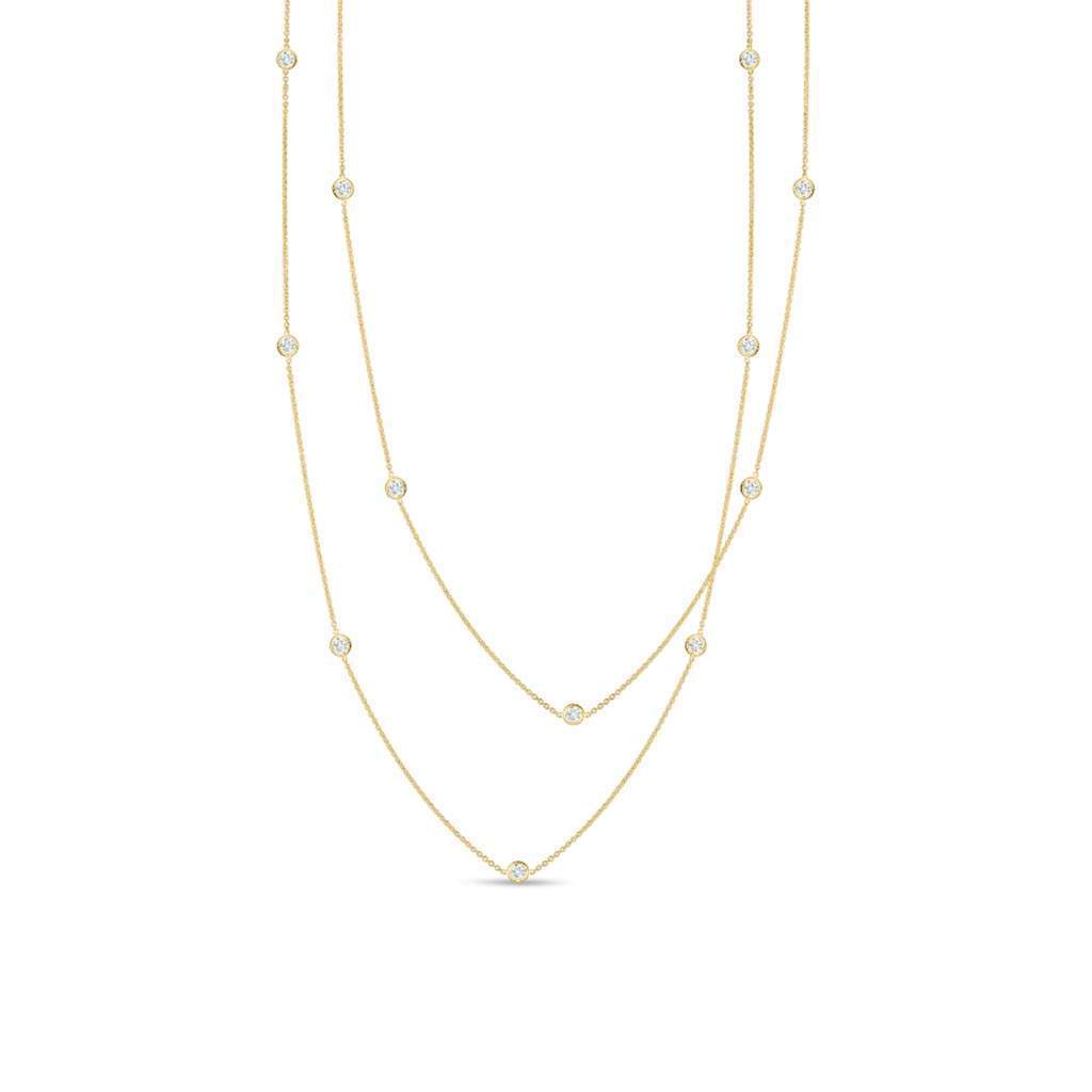 Roberto Coin 18K Yellow Gold 15 Station Diamond BY the Inch Necklace, 15Diamonds =~0.75ctw, Length