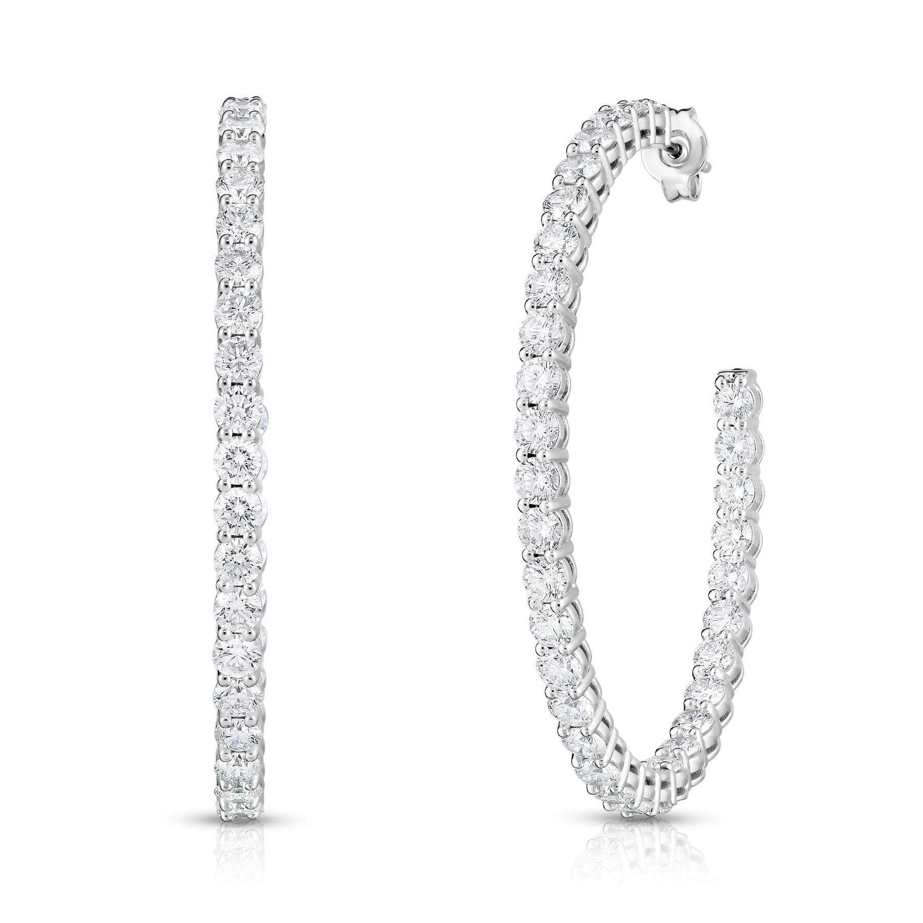 18 karat white gold Roberto Coin Perfect Large Open-Back Earrings containing 7.95 carat total of diamonds with G-H in color and SI in clarity.