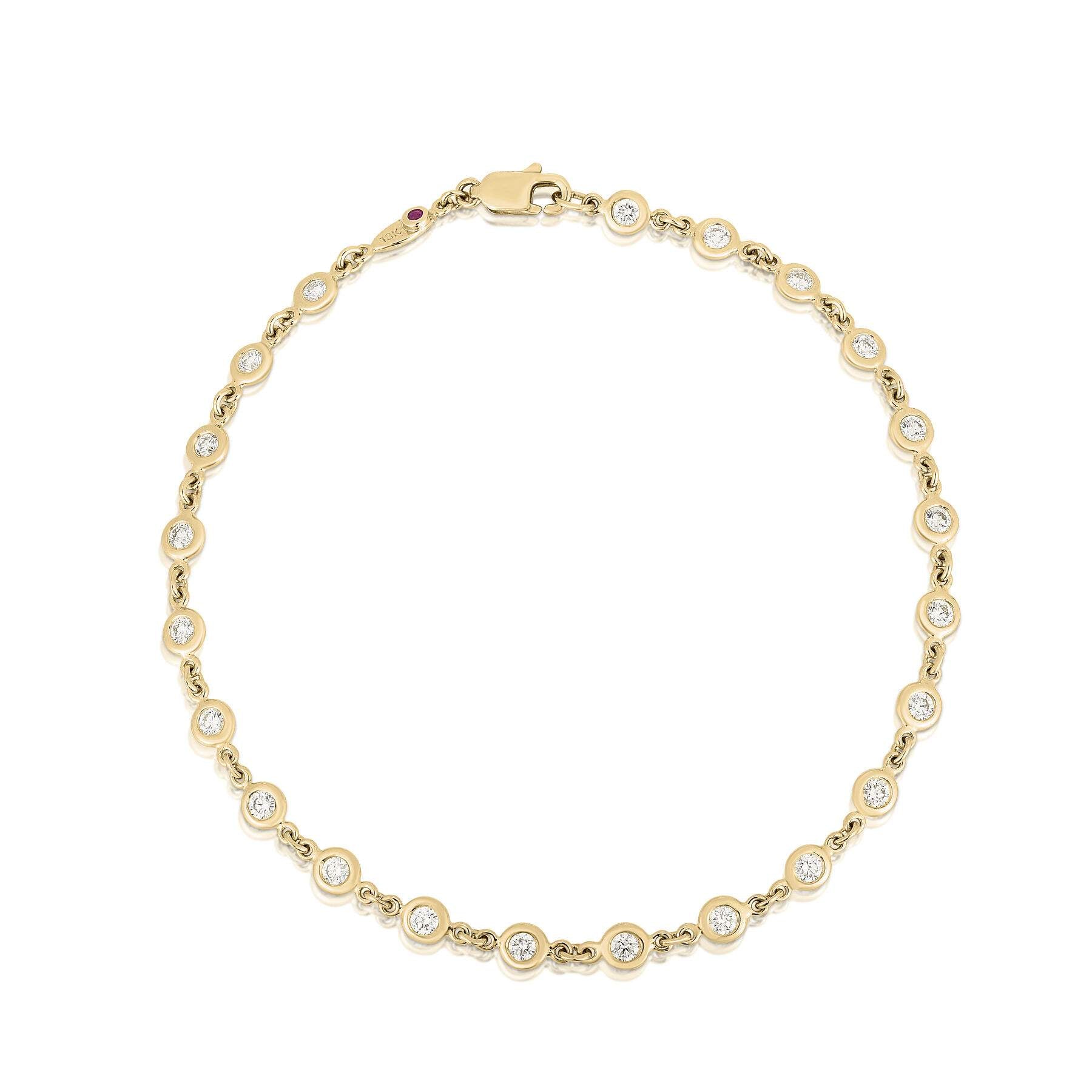 18 karat yellow gold Roberto Coin By the Inch Continuous Station Bracelet, 7 inch, containing 0.73 carat total of diamonds.