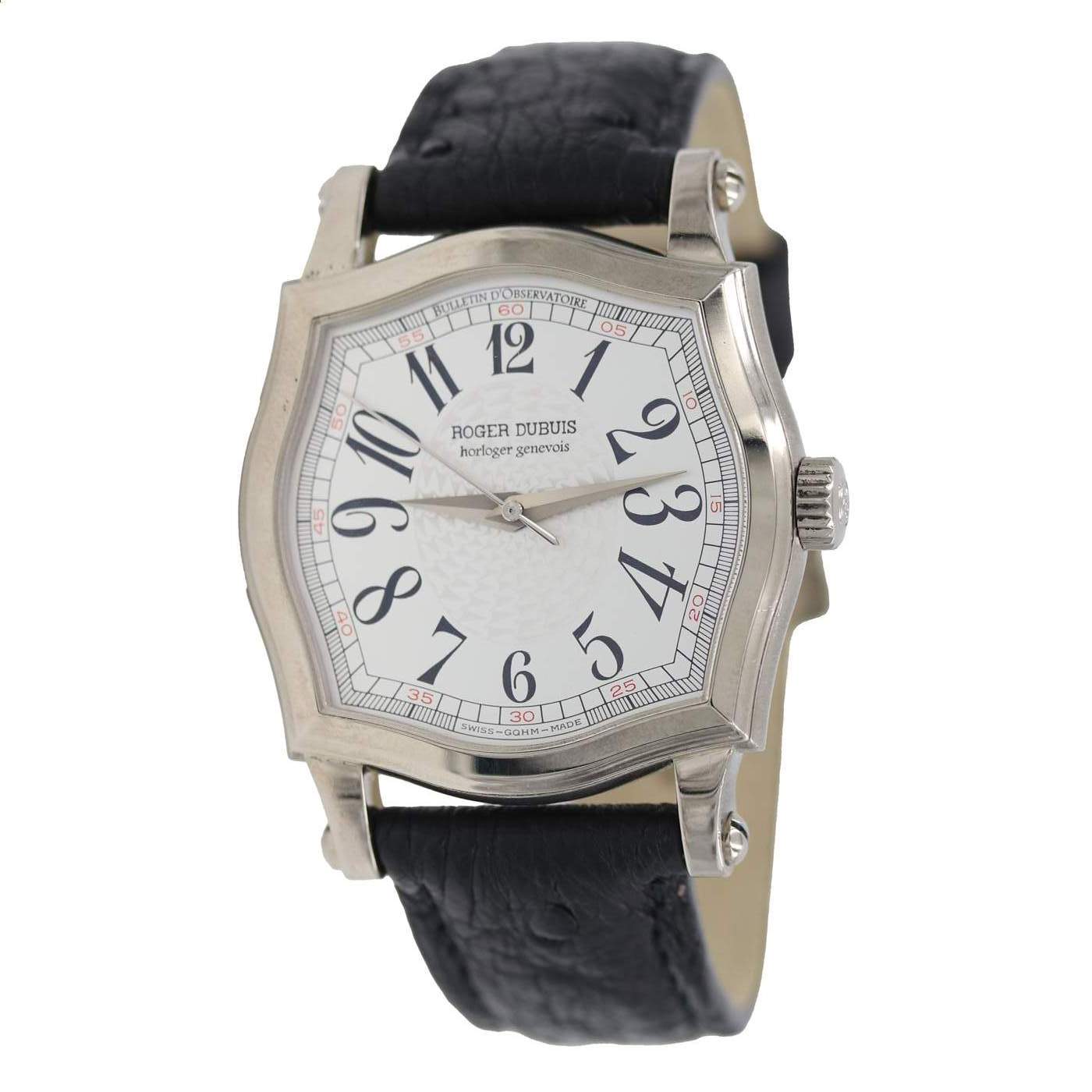 18 karat white gold Roger Dubuis Sympathie Estate Watch containing an exposition back.