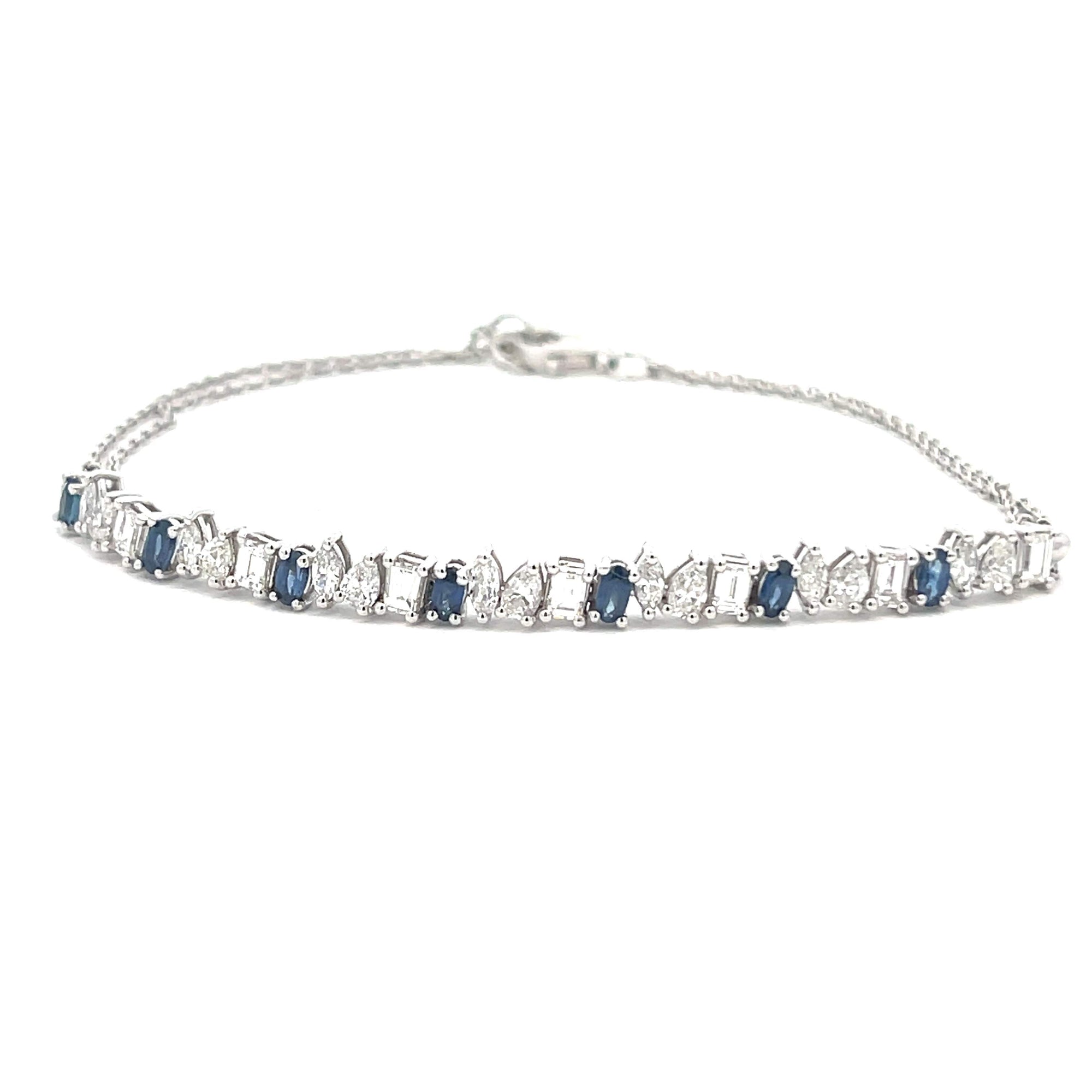 18 karat white gold Bracelet containing 0.60 carat total of blue sapphires and 2.00 carat total of diamonds.