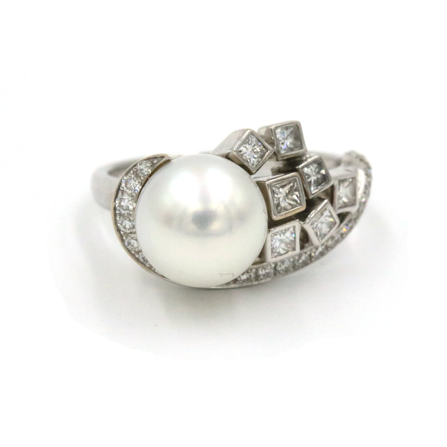 18K White Gold Ring with a South Sea 6.47mm Pearl and Diamonds