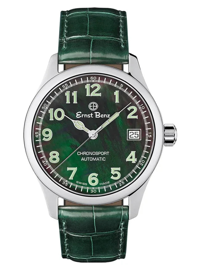 Dial: Black Mother of Pearl w/ Green Luminous Numerals