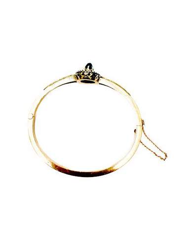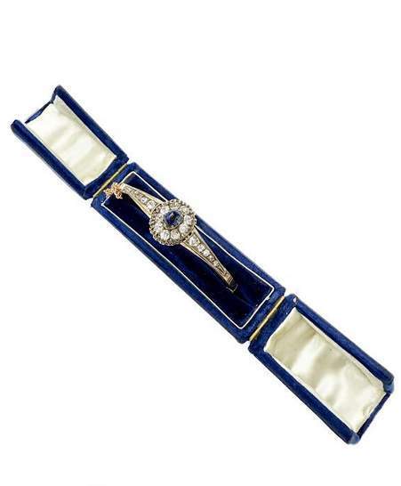 14K Yellow Vintage Sapphire Diamond Bangle Bracelet, With Vintage Blue Box