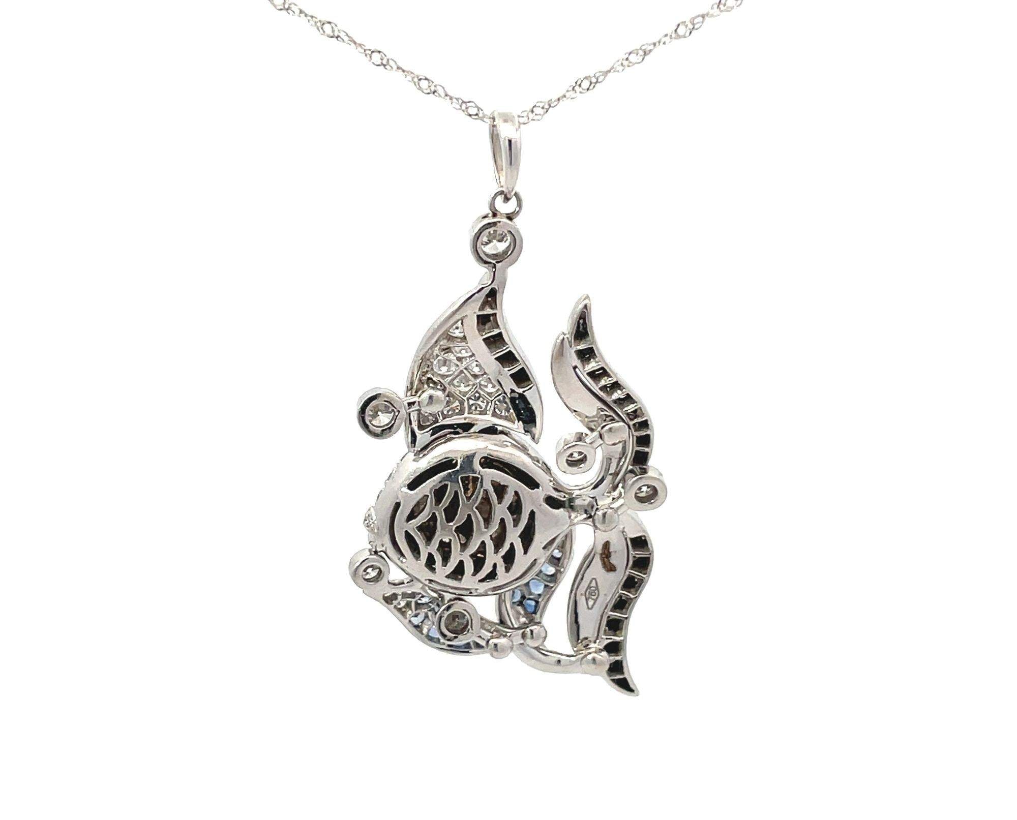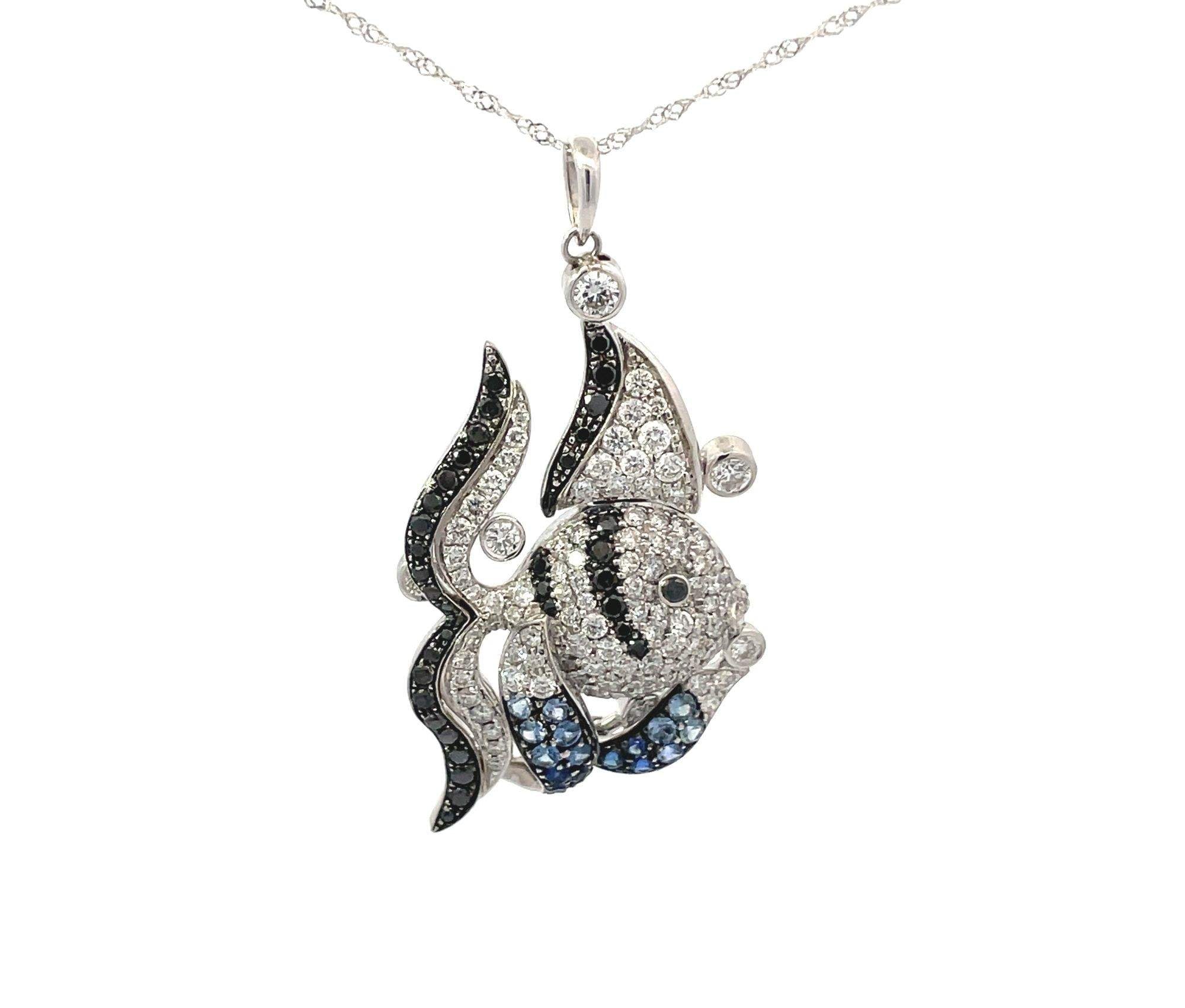 This Necklace Features A Fish Pendant With 1.50 Carats Of Black Diamonds, 2.00 Carats Of White Diamonds And Sapphire Accents Crafted In 18kt White Gold.The Pendant Is About 1 1/2in Long The Pendant Is About 1 1/2in Long On An 18in Chain.