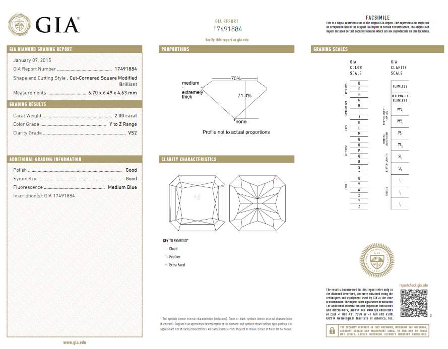 Platinum/ 18K Yellow Gold Halo Ring, Center 2.00Ct Radiant YZ/VS2, GIA Grading Report COPY ONLY 17491884 (YZ Color Grade, Looks Light Fancy Yellow), 52D=~.52Ctw Split Shank w Halo